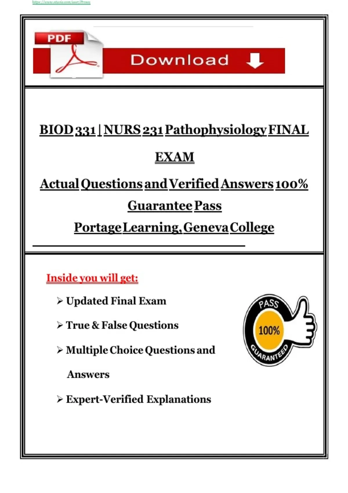 BIOD 331 | NURS 231 Pathophysiology FINAL EXAM Actual Questions and Verified Answers 100% Guarantee Pass Portage Learning, Geneva College