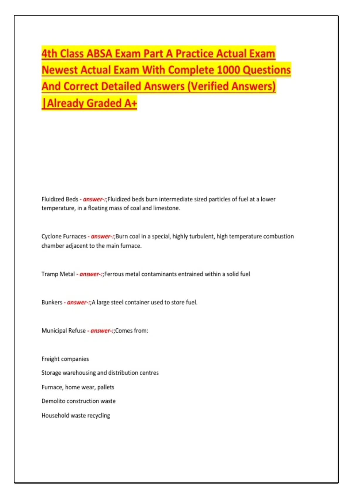 4th Class ABSA Exam Part A Practice Actual Exam Newest Actual Exam With Complete 1000 Questions And Correct Detailed Answers (Verified Answers) |Already Graded A+
