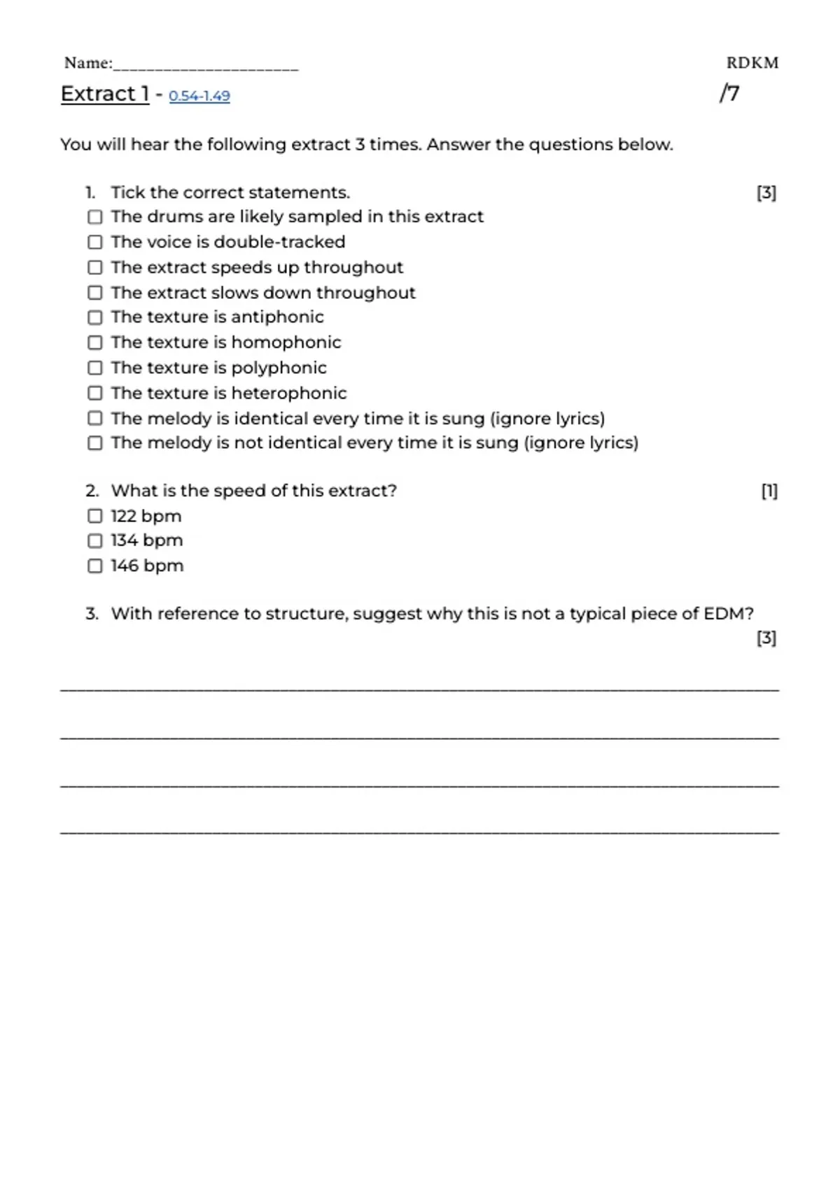 CIE iGCSE Music - EDM Practice Questions