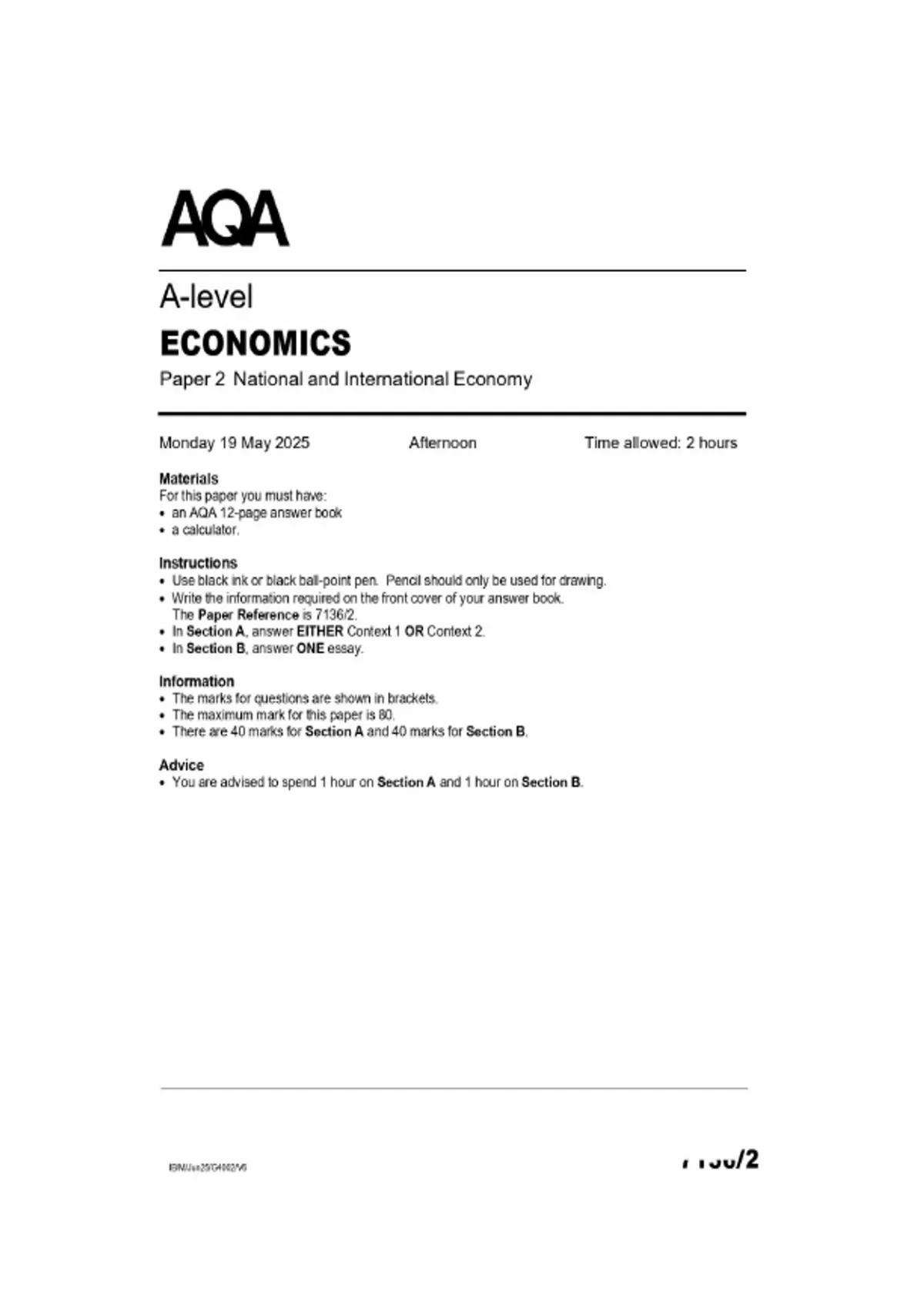 actual aqa a level economics paper 2 2025 (national and international economy )merged mark scheme