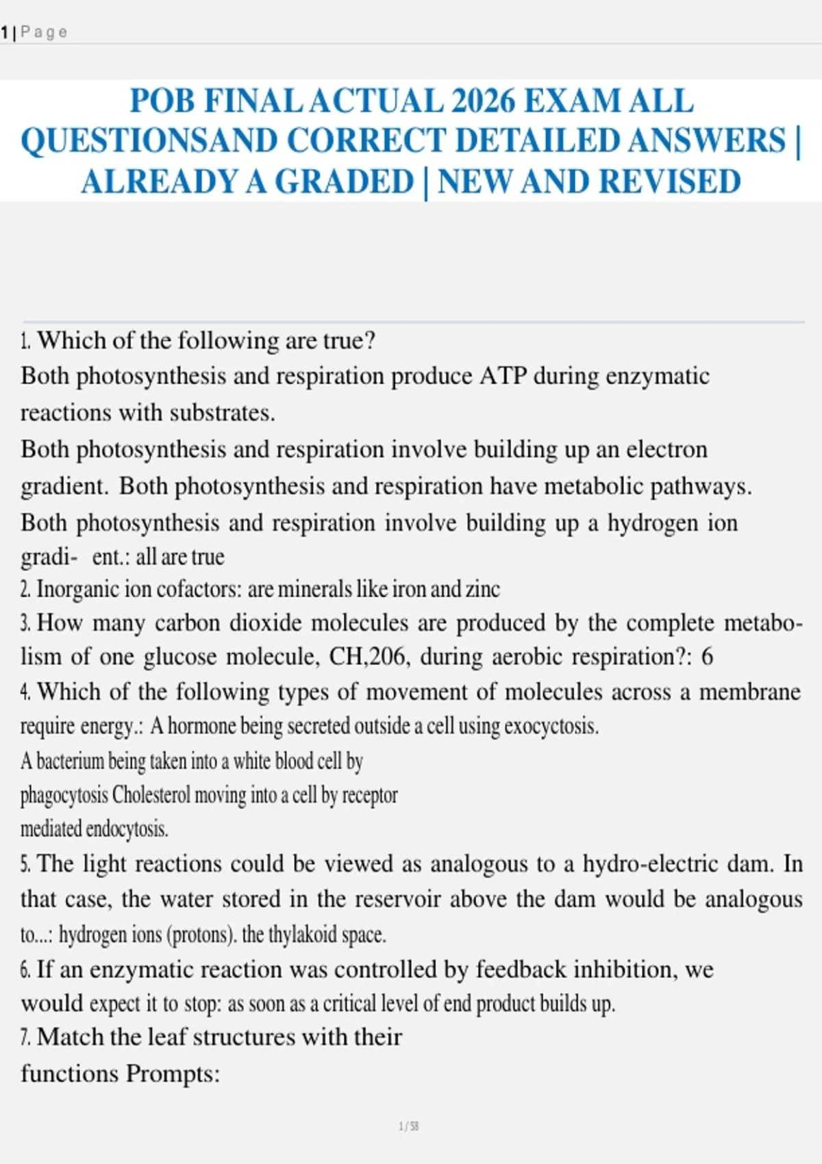 POB FINALACTUAL 2026 EXAM ALL QUESTIONSAND CORRECT DETAILED ANSWERS | ALREADY A GRADED | NEW AND REVISED