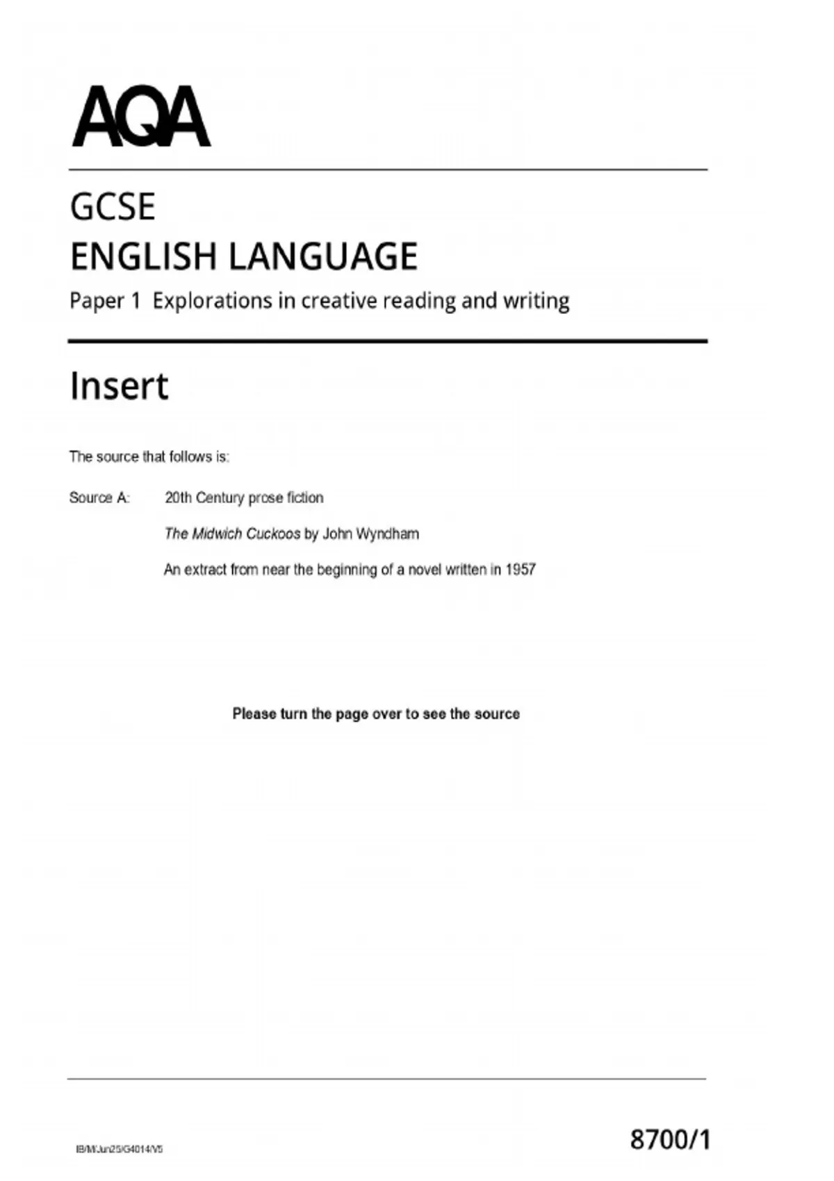gcse aqa english language insert 1 2025