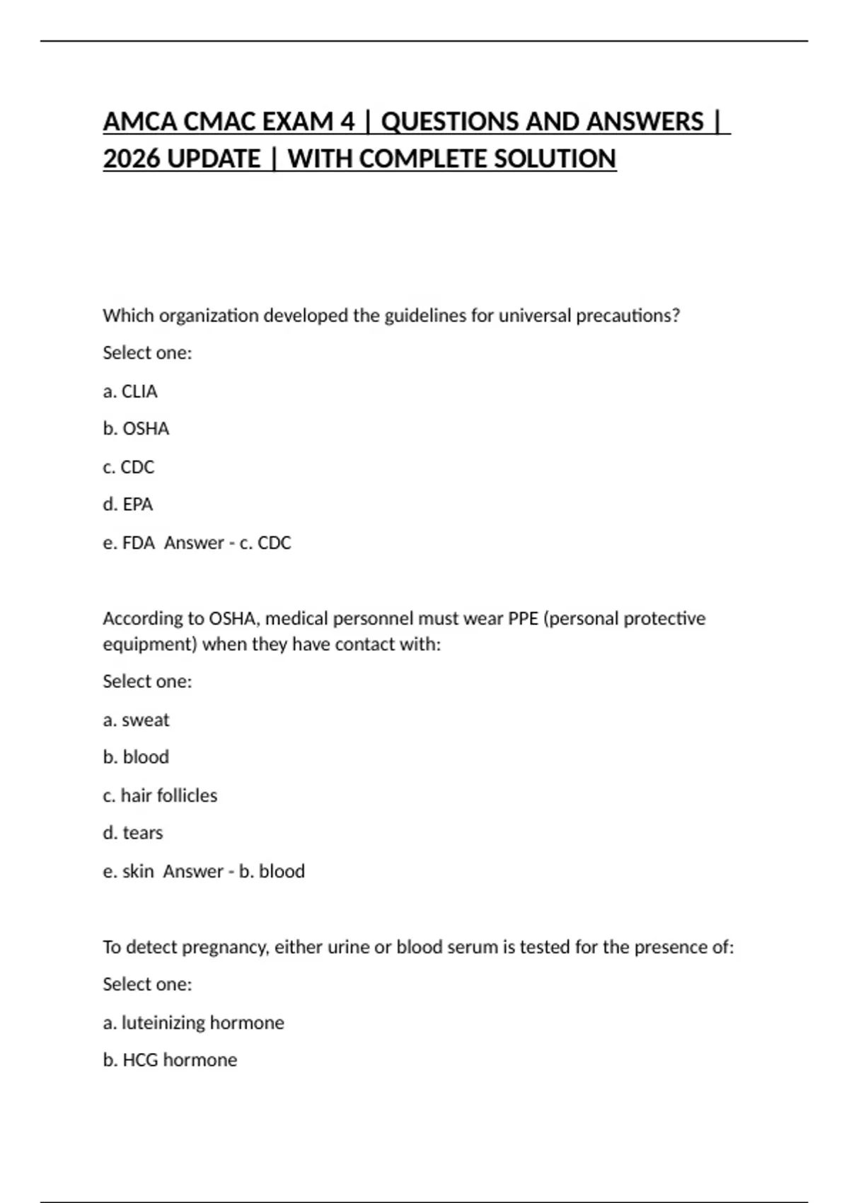 AMCA CMAC EXAM 4 | QUESTIONS AND ANSWERS | 2026 UPDATE | WITH COMPLETE SOLUTION