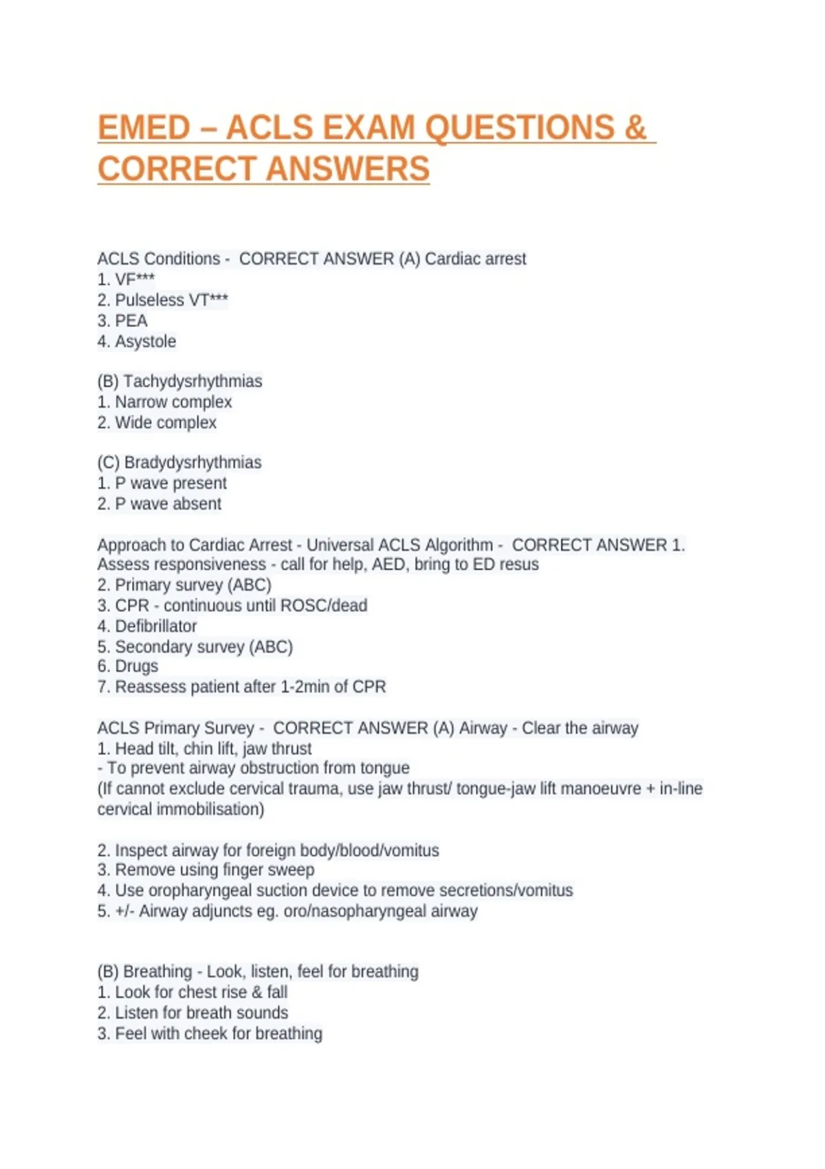 EMED – ACLS EXAM QUESTIONS &
