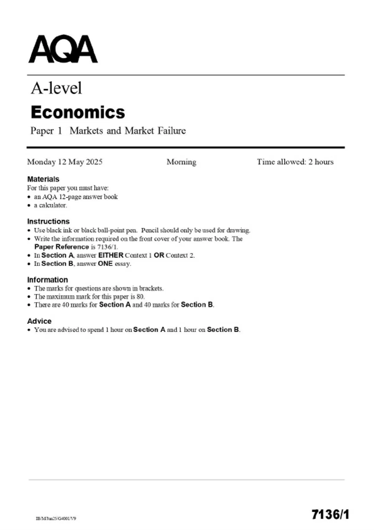 A LEVEL AQA 2025 ECONOMICS PAPER 1 7136-1 QUESTION PAPER AND MARK SCHEME MERGED