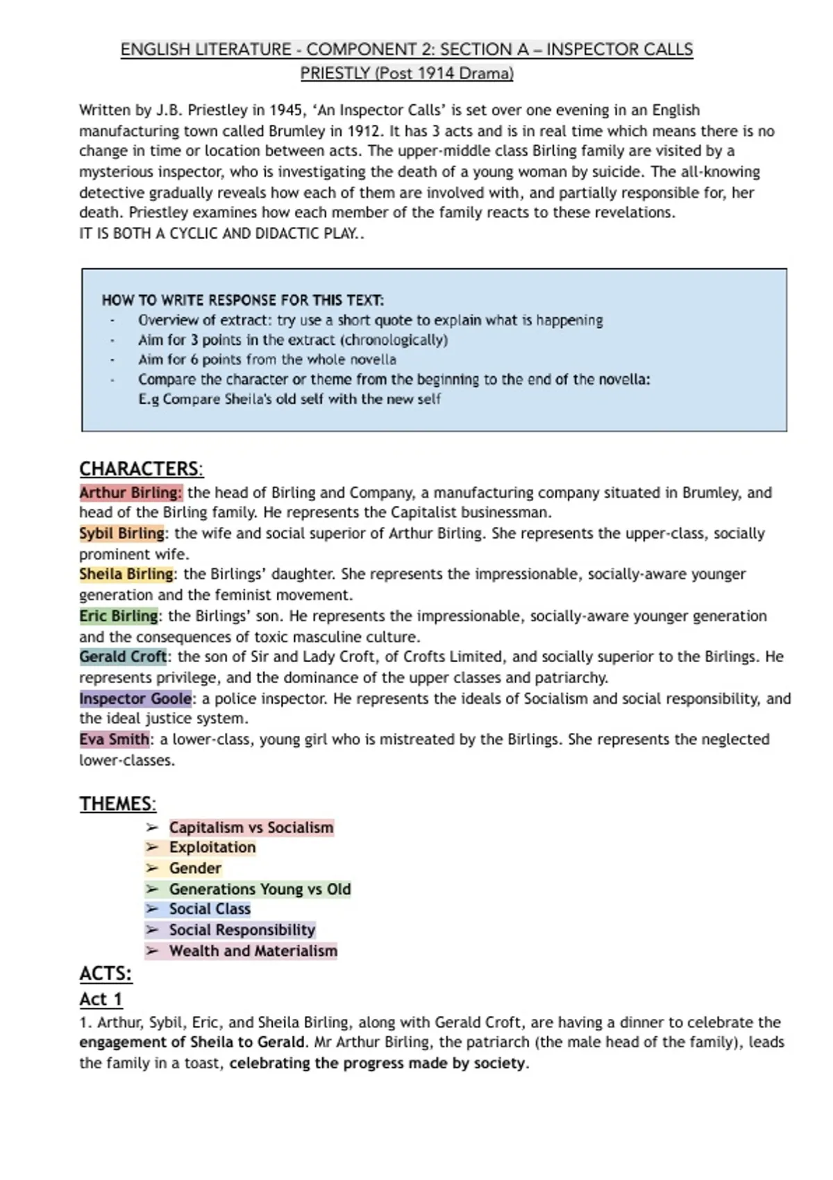 , ENGLISH LITERATURE - COMPONENT 2: SECTION A – INSPECTOR CALLS