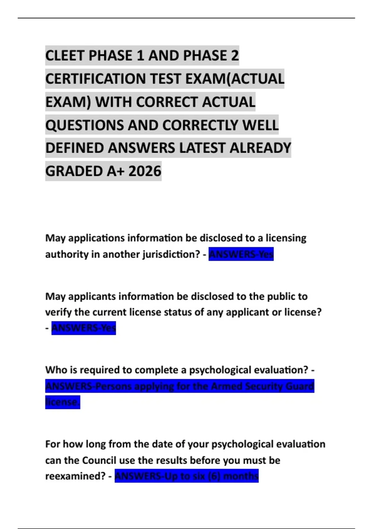ANSWERS-Persons applying for the Armed Security Guard