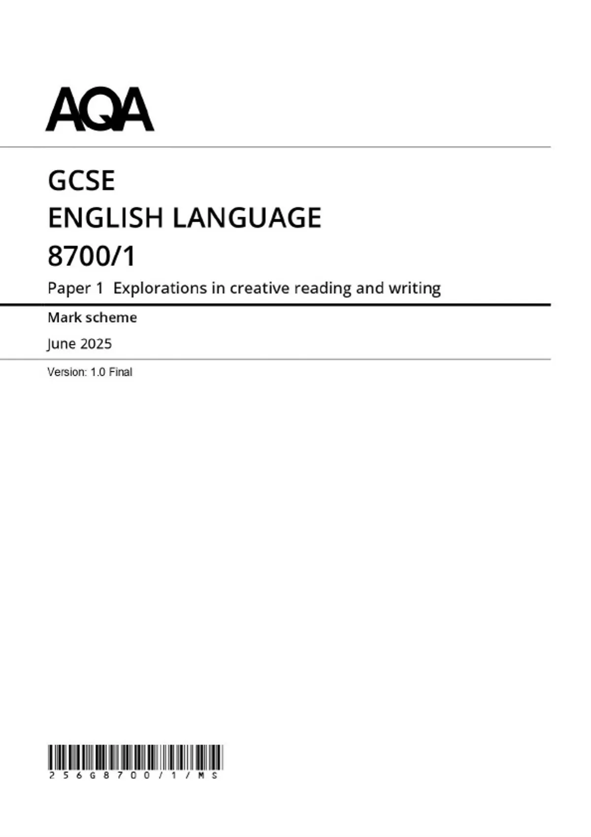 GCSE AQA 2025 English Language Paper 1 Including Mark Scheme