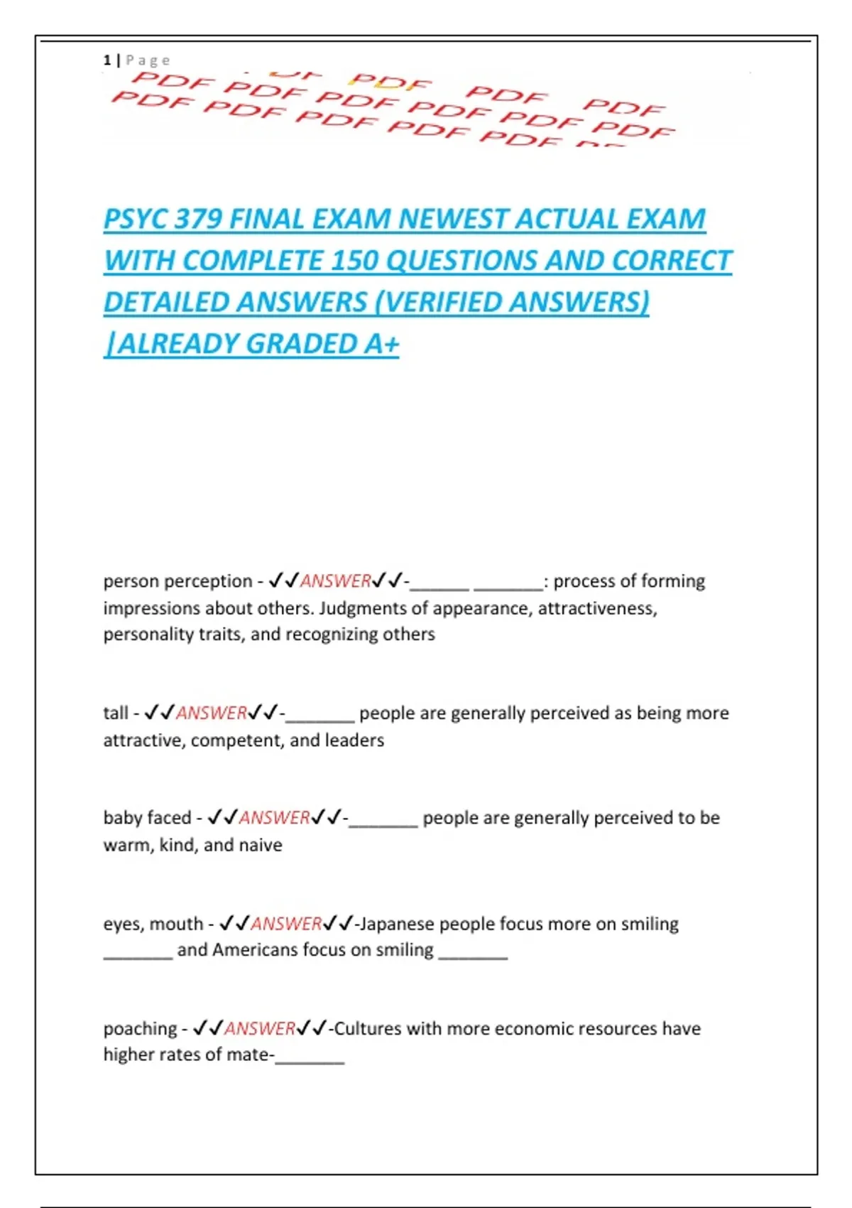 PSYC 379 FINAL EXAM NEWEST ACTUAL EXAM