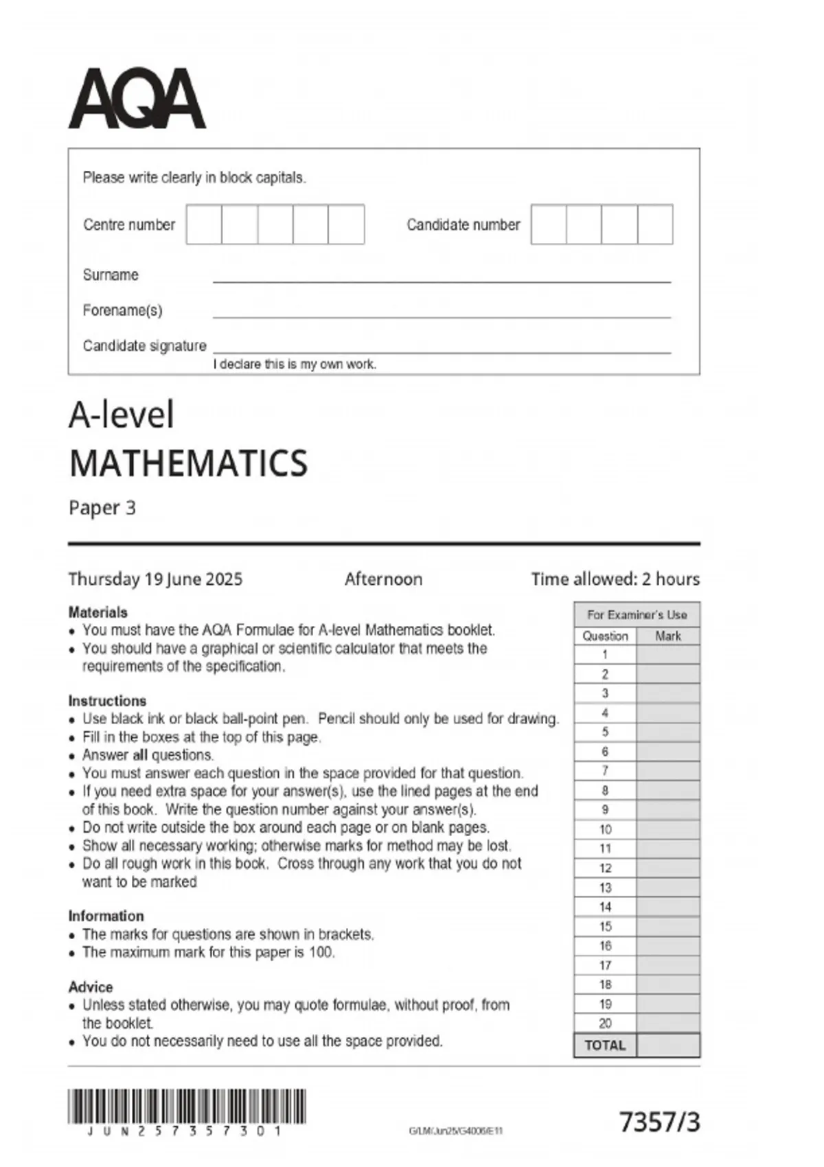 aqa a level mathematics paper 3 2025 merged mark scheme