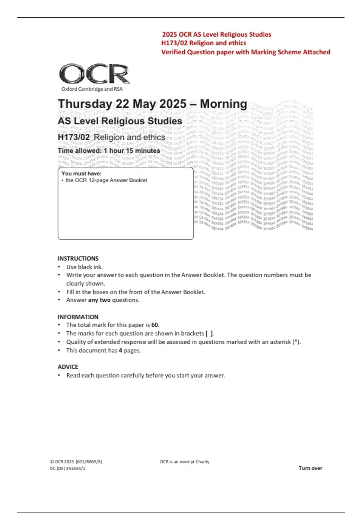 2025 OCR AS Level Religious Studies