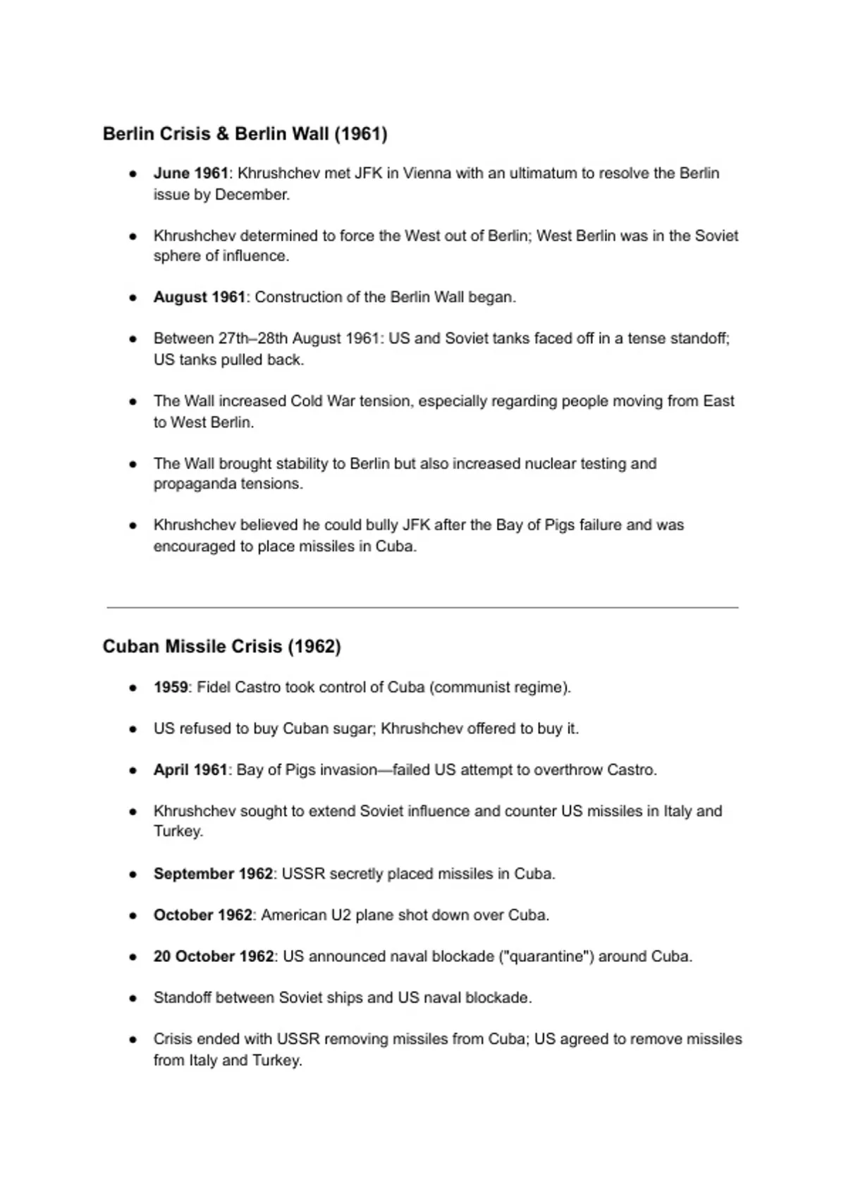 ● Khrushchev believed he could bully JFK after the Bay of Pigs failure and was