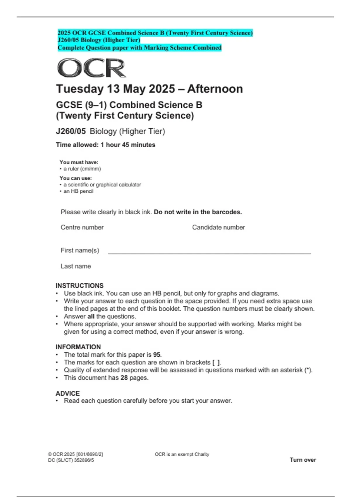 Science) J260-05 Biology (Higher Tier) Complete Question paper1with Mar