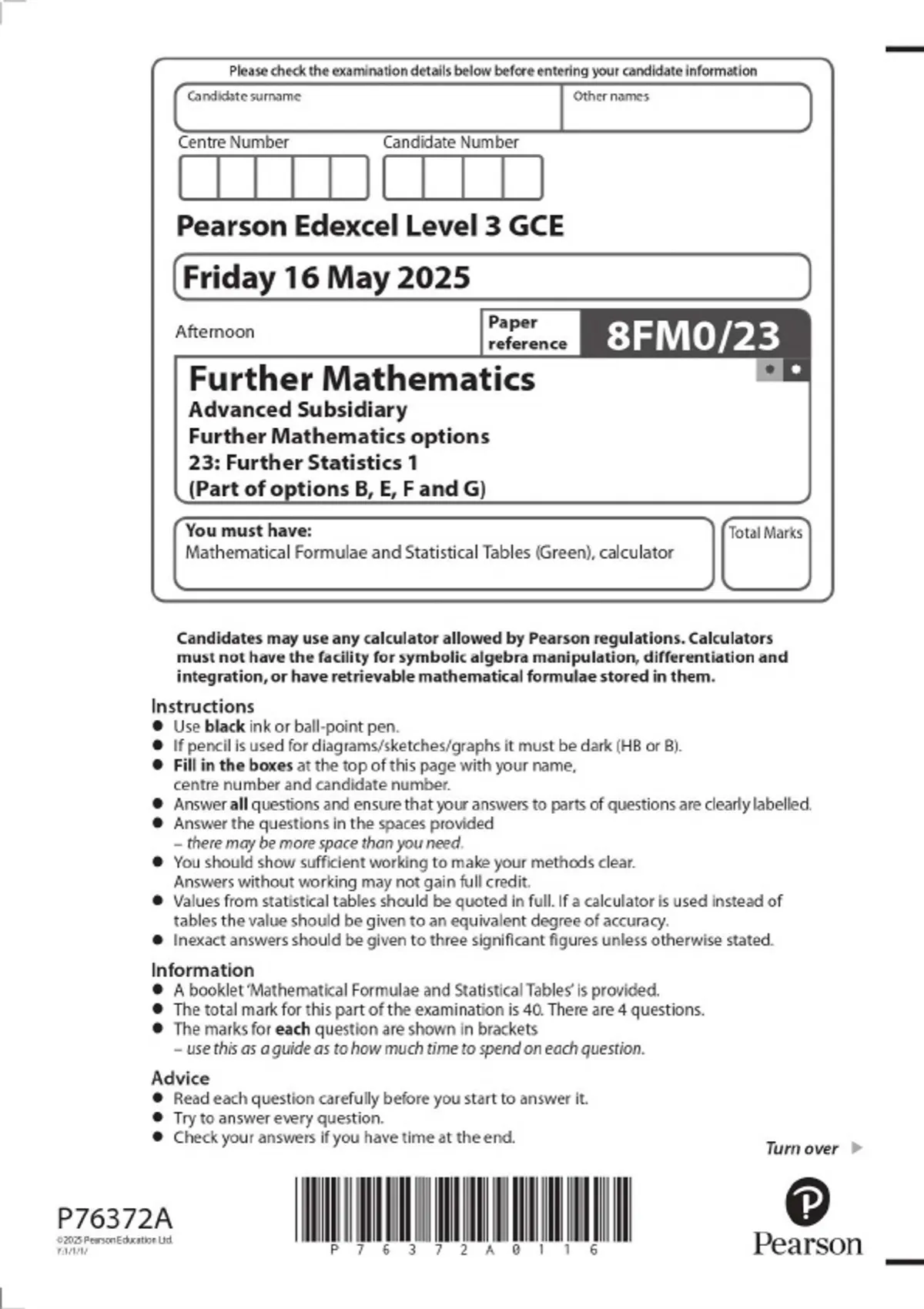 2025 pearson edexcel level 3 gce 8fm023 further m