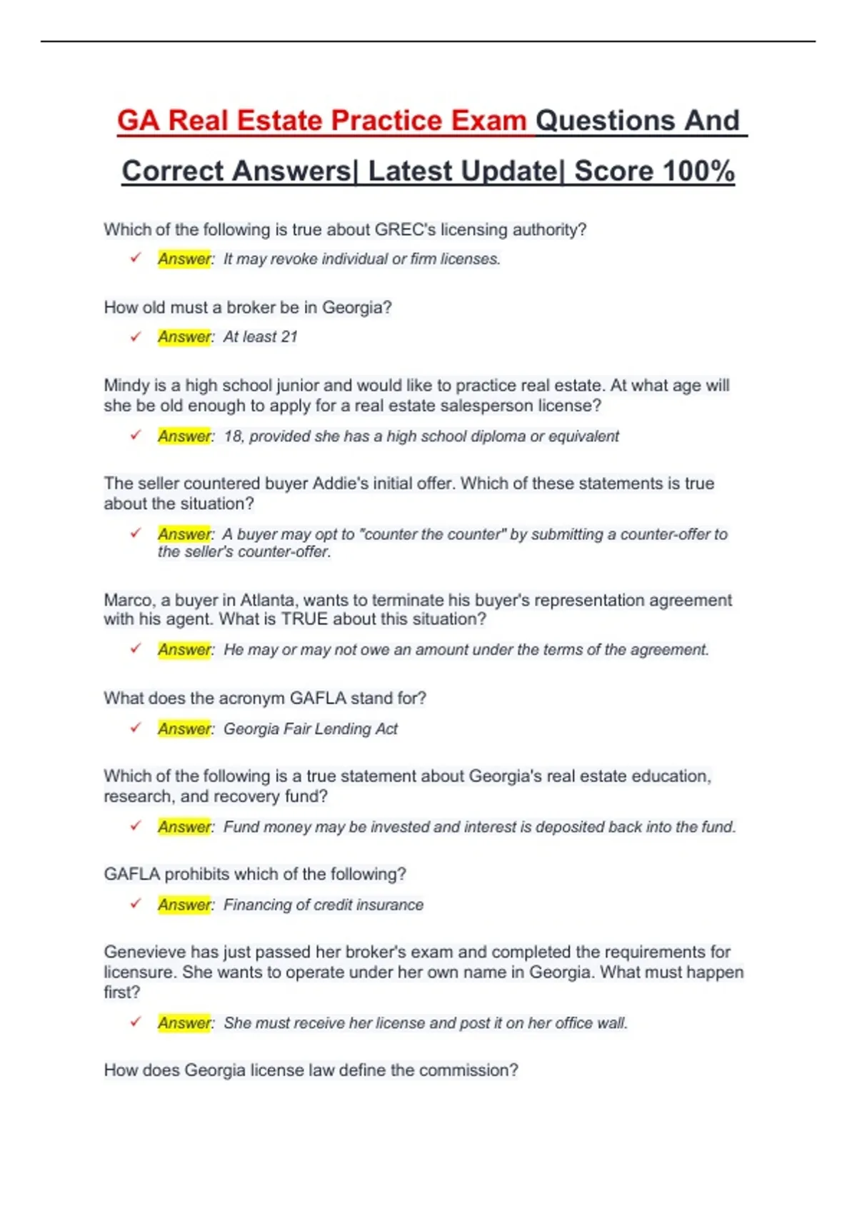 Answer: Georgia Real Estate Commission