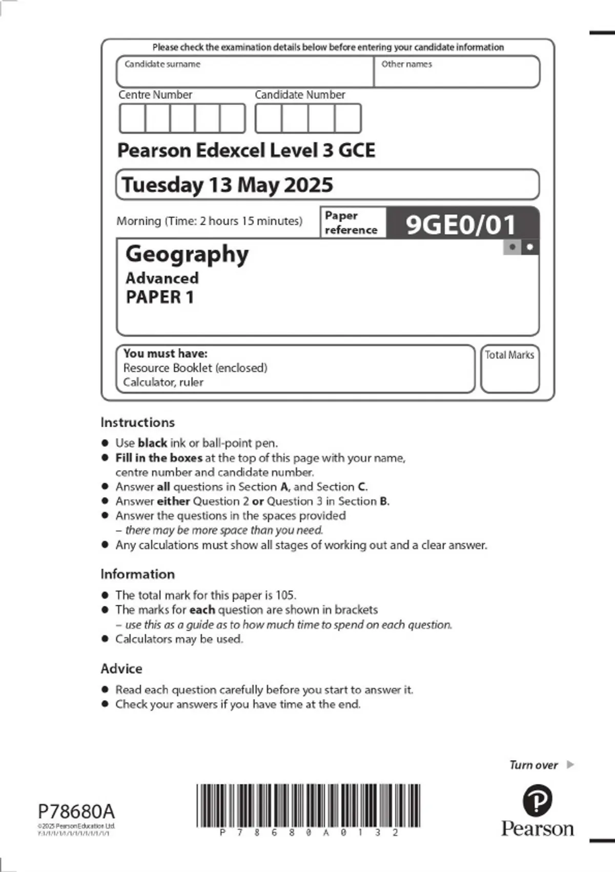 2025 pearson edexcel level 3 gce 9ge001 geograph