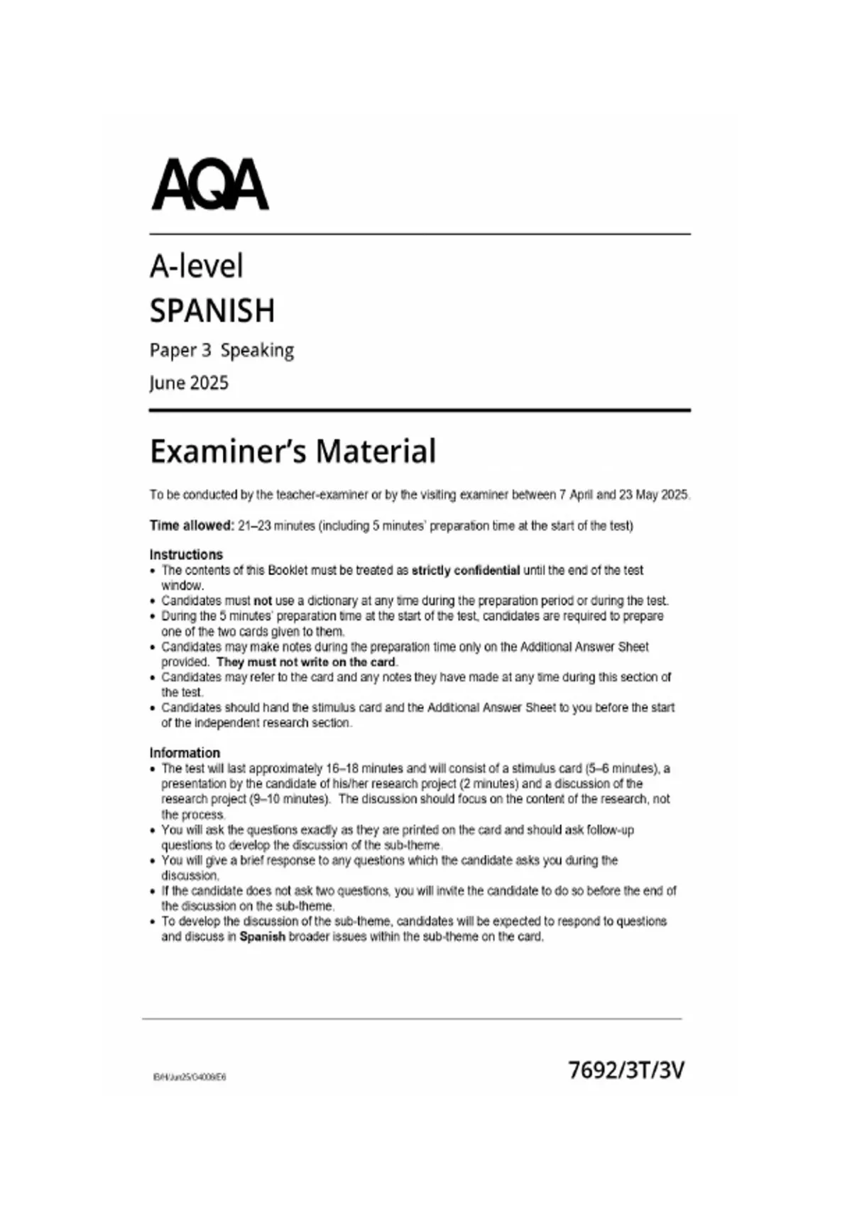 aqa spanish speaking paper 3