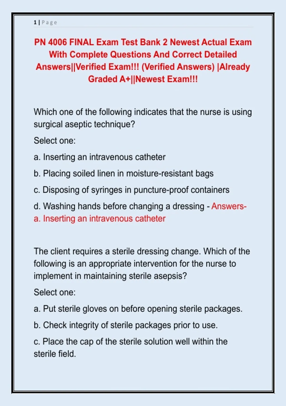 PN 4006 FINAL Exam Test Bank 2 Newest Actual Exam