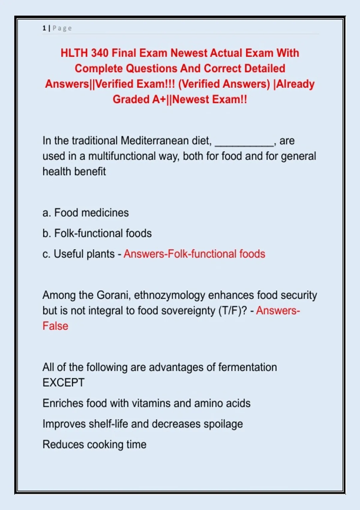 HLTH 340 Final Exam Newest Actual Exam With Complete Questions And Correct Detailed Answers||Verified Exam!!! (Verified Answers) |Already Graded A+||Newest Exam!!