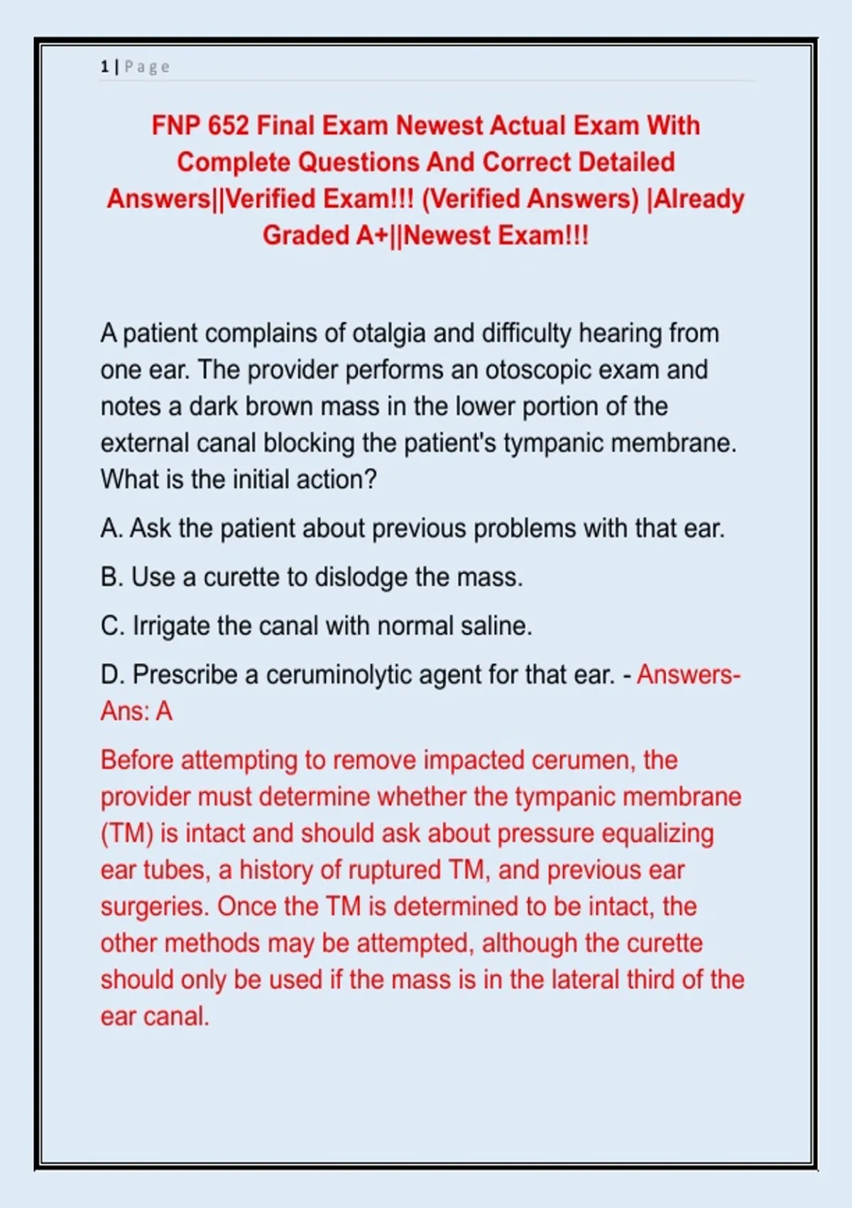 D. Prescribe a ceruminolytic agent for that ear. - Answers-