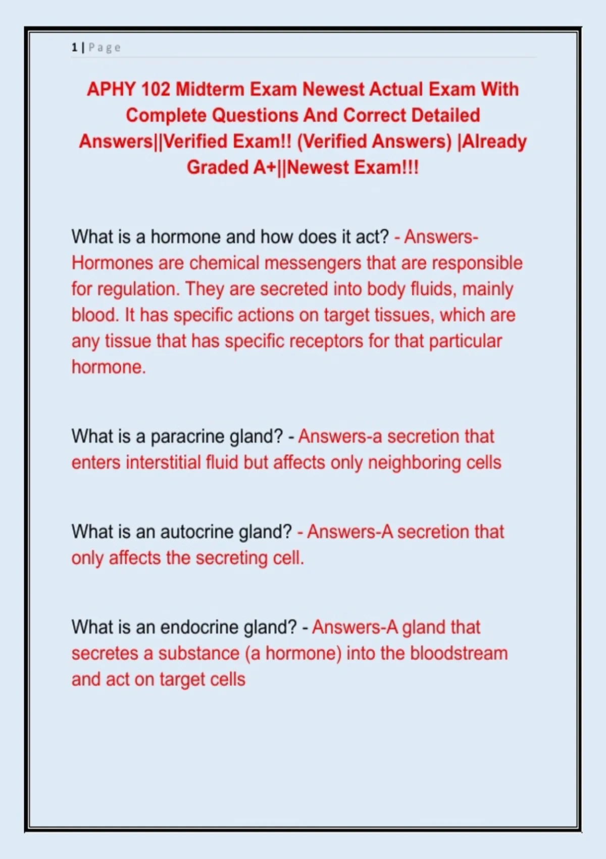 APHY 102 Midterm Exam Newest Actual Exam With Complete Questions And Correct Detailed Answers||Verified Exam!! (Verified Answers) |Already Graded A+||Newest Exam!!!