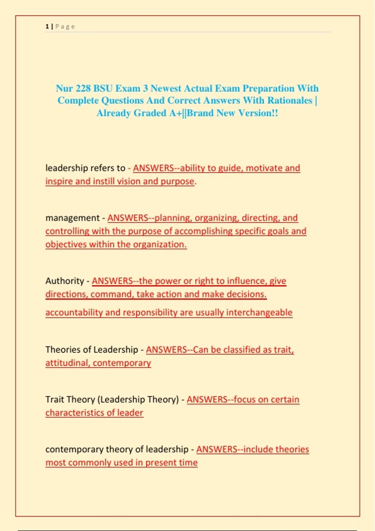 Theories of Leadership - ANSWERS--Can be classified as trait,