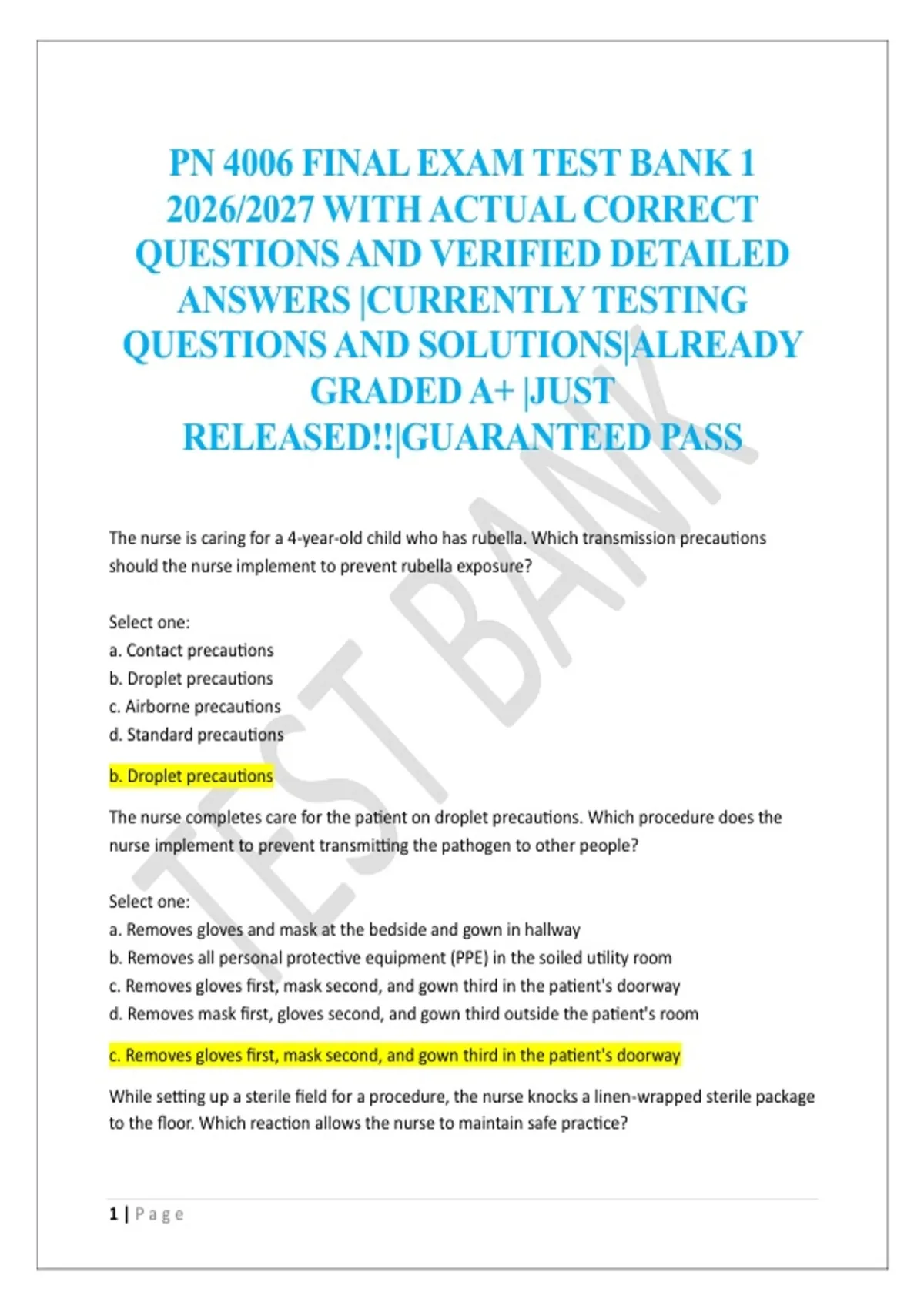 PN 4006 FINAL EXAM TEST BANK 1 2026/2027 WITH ACTUAL CORRECT QUESTIONS AND VERIFIED DETAILED ANSWERS |CURRENTLY TESTING QUESTIONS AND SOLUTIONS|ALREADY GRADED A+ |JUST RELEASED!!|GUARANTEED PASS