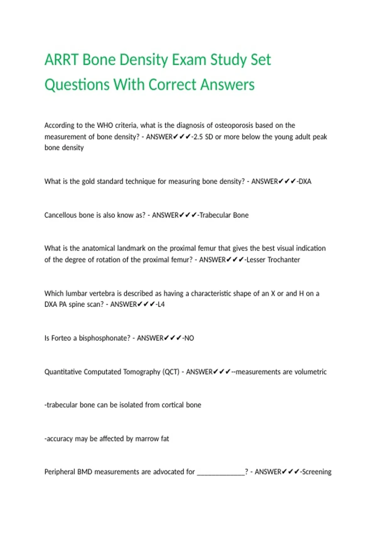 ARRT Bone Density Exam Study Set