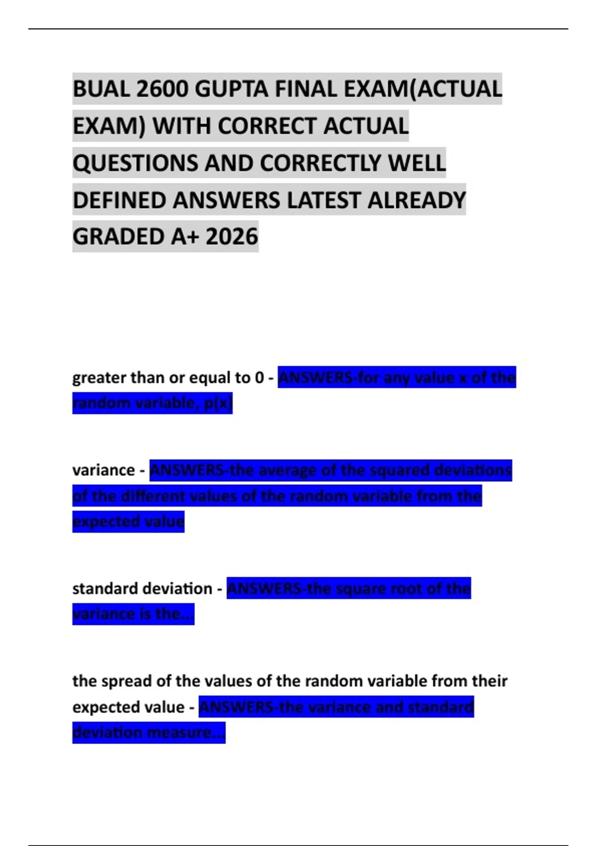 probability - ANSWERS-an area under a continuous