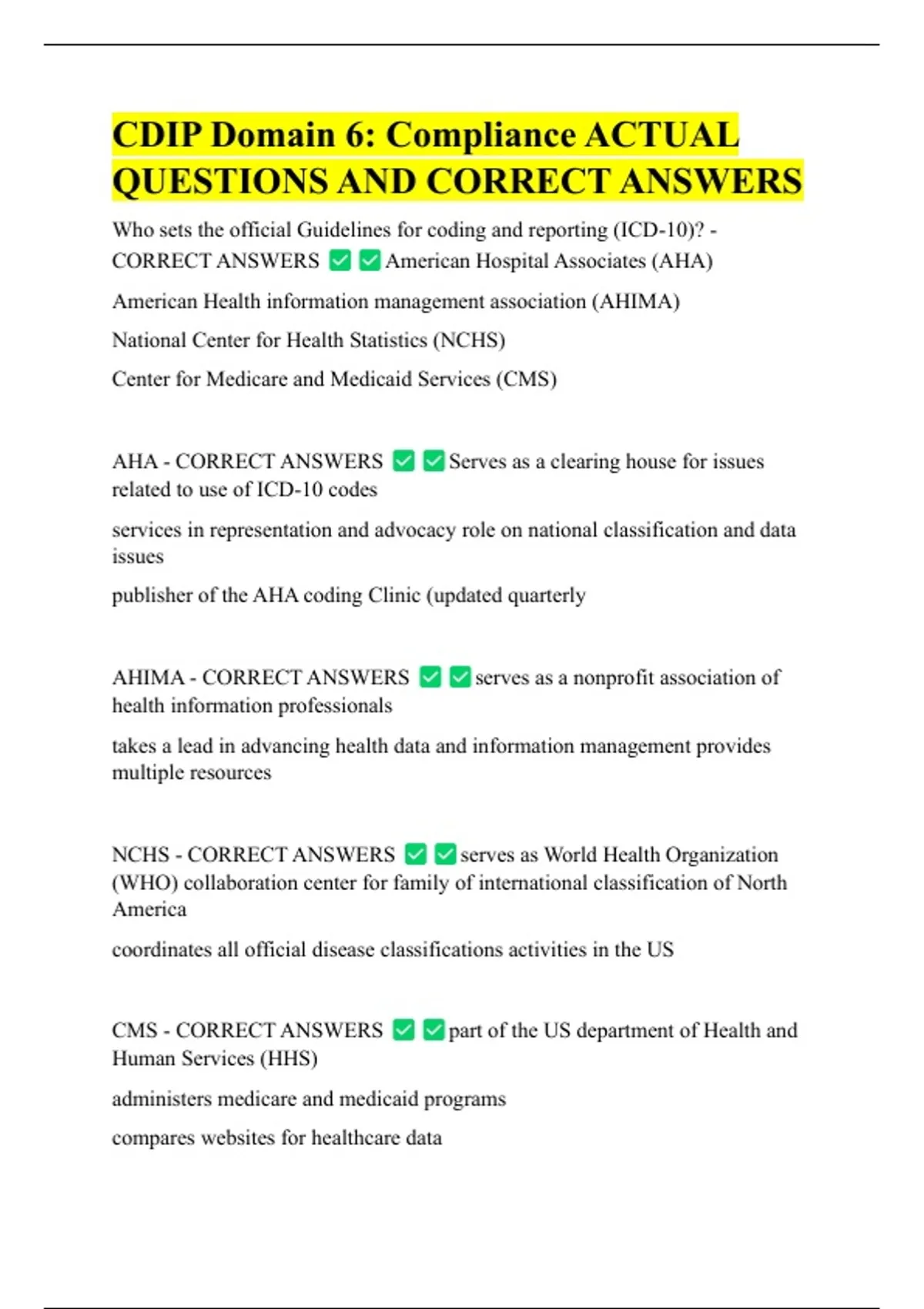 CMS - CORRECT ANSWERS part of the US department of Health and
