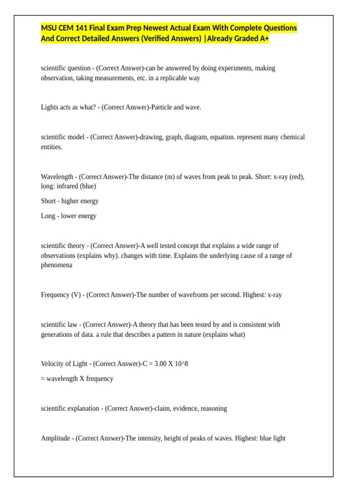 MSU CEM 141 Final Exam Prep Newest Actual Exam With Complete Questions