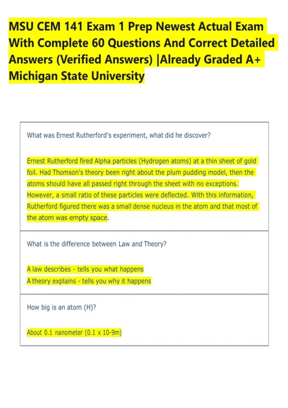 Answers (Verified Answers) |Already Graded A+