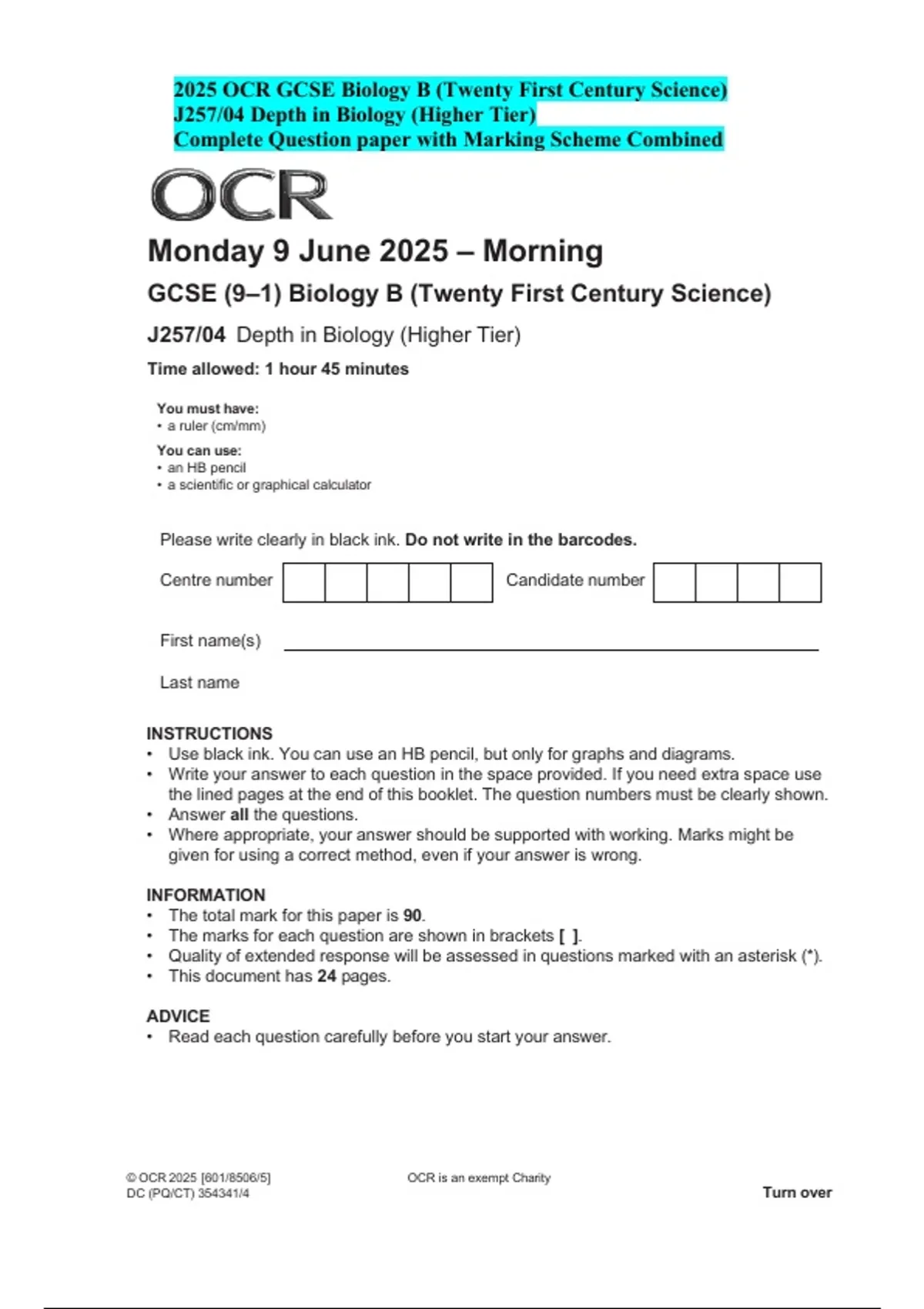 2025 OCR GCSE Biology B (Twenty First Century Science)