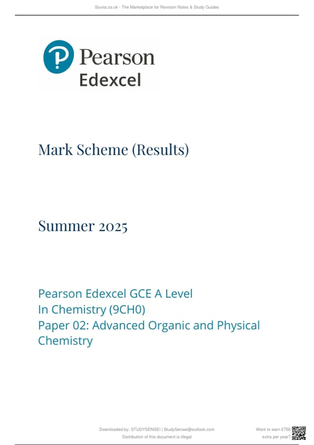 A-LEVEL EDEXCEL CHEMISTRY 2025 ALL QUESTION PAPERS MARKSCHEMES 9CH0/01/02/03
