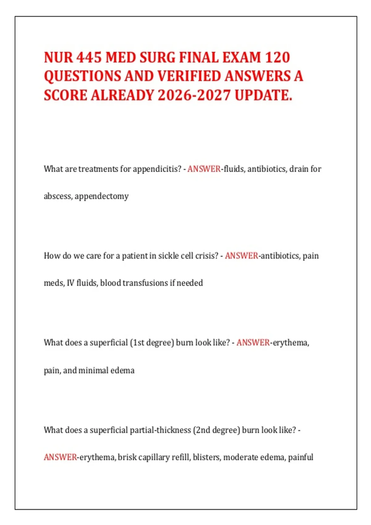 QUESTIONS AND VERIFIED ANSWERS A