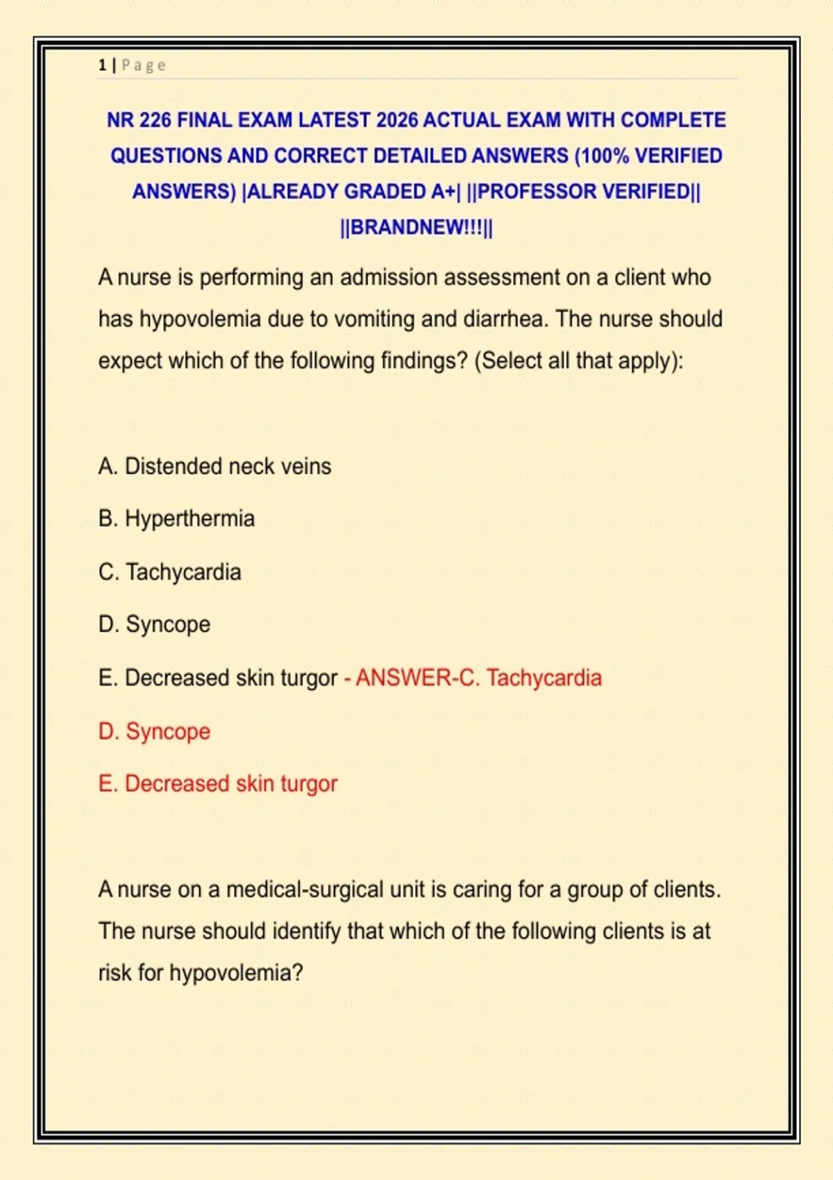 NR 226 FINAL EXAM LATEST 2026 ACTUAL EXAM WITH COMPLETE