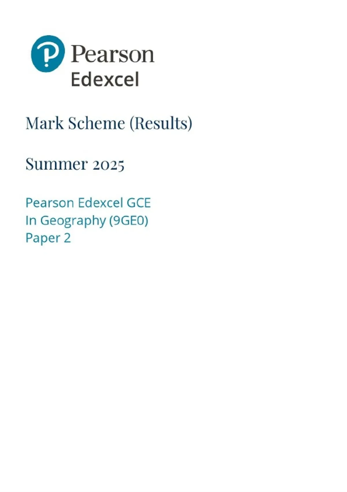 A-LEVEL EDEXCEL 2025 GEOGRAPHY PAPER 2 9GE0/02 MARK SCHEME