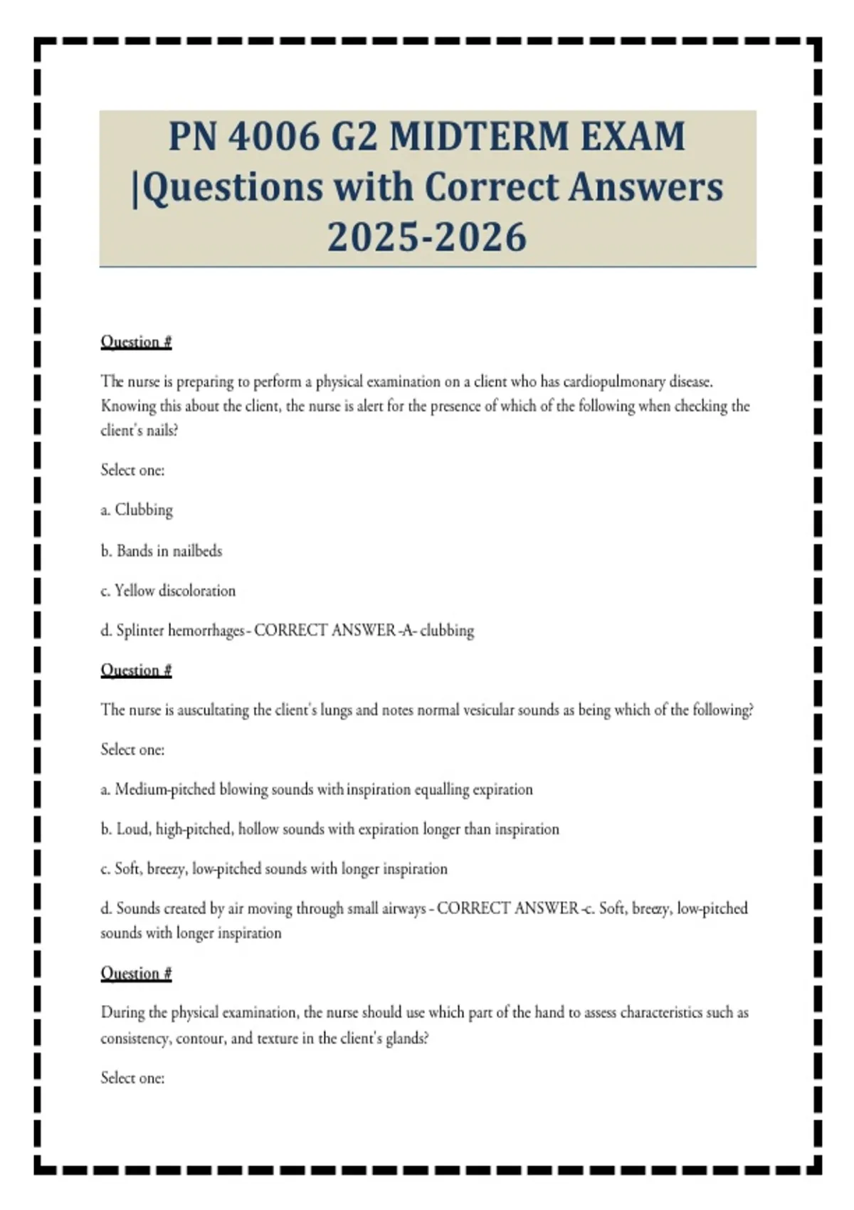 PN 4006 G2 MIDTERM EXAM |Questions with Correct Answers