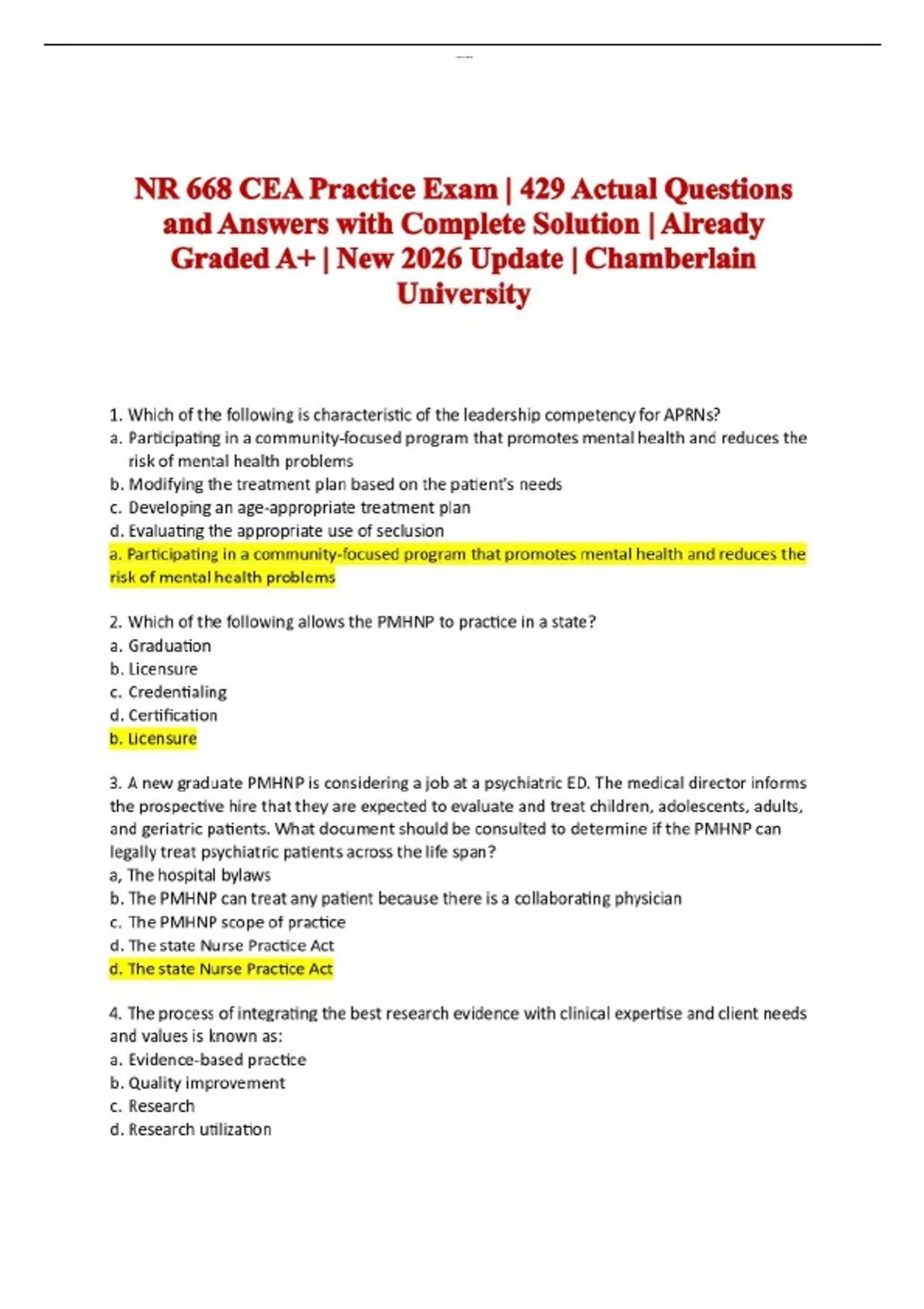 NR 668 BUNDLED Exam Questions and Correct Detailed Answers with Complete Solution | Well Illustrated | Already Graded A+ | New Update 2026 | Chamberlain University