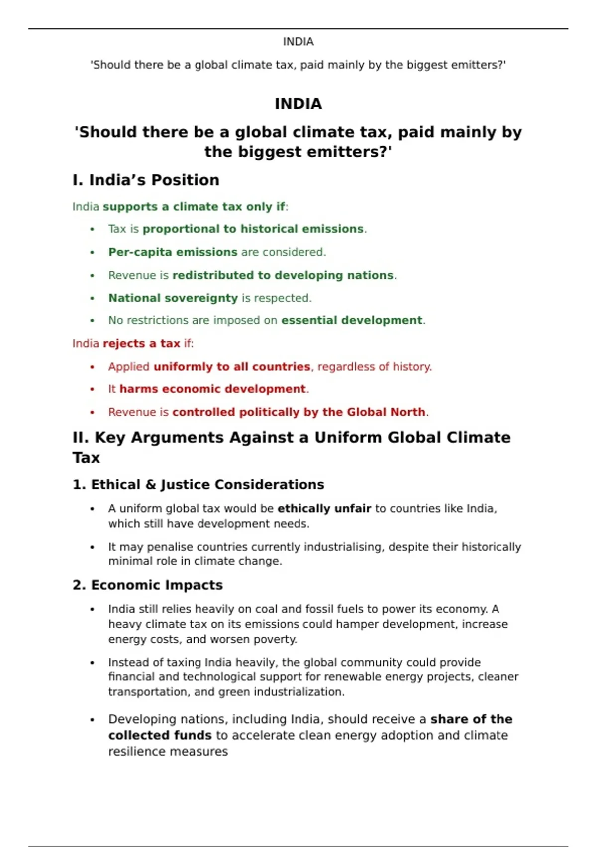 Notes for a Model UN style debate on Climate Change Taxation from the perspective of India Perfect for A-level and GCSE students Also serves as Case Study reference material for the OCR A-level Geography module on Climate Change