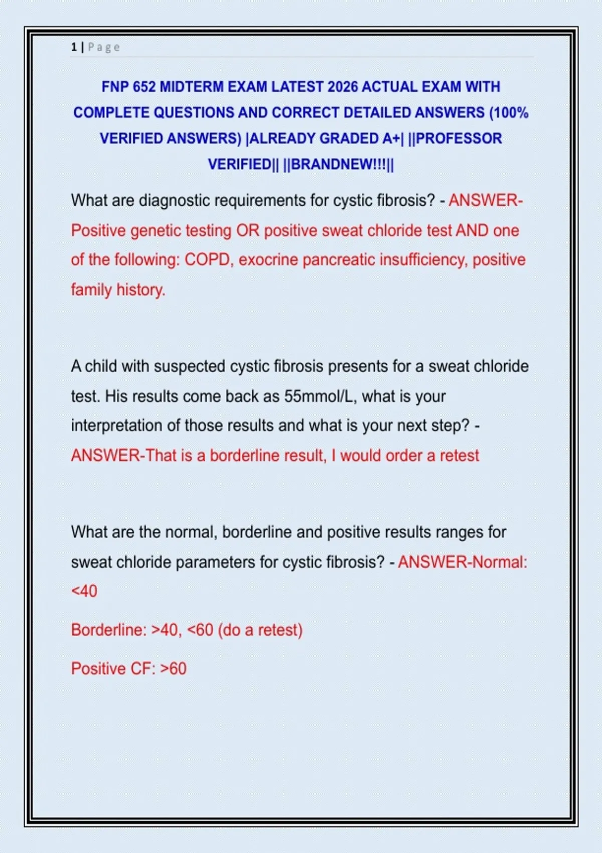 What are diagnostic requirements for cystic fibrosis? - ANSWER-
