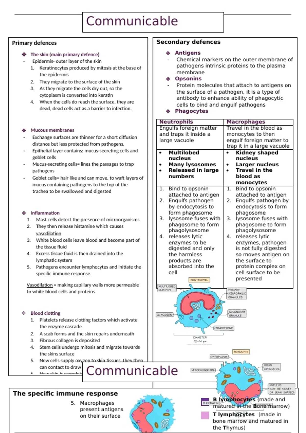 diseases Secondary defences