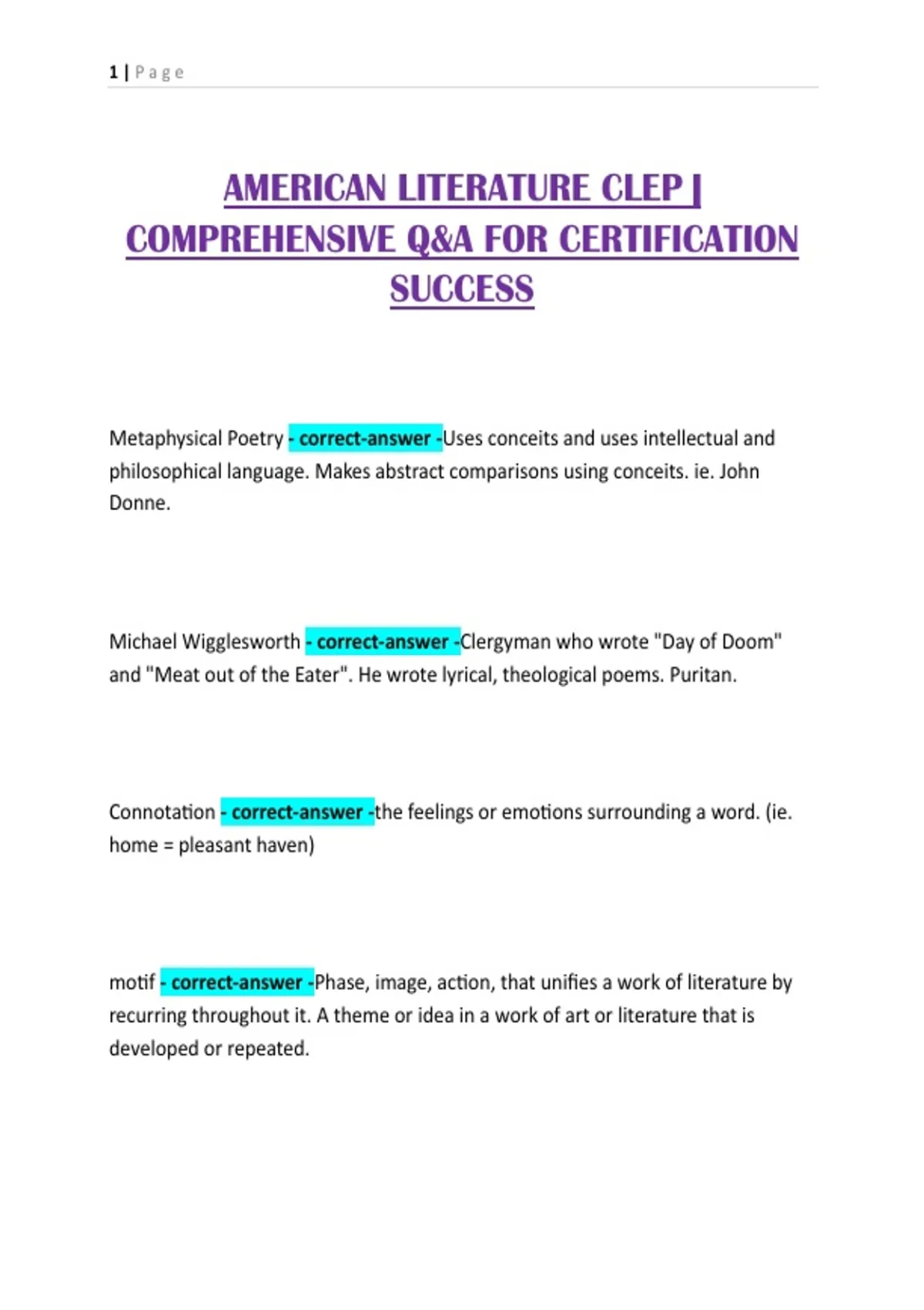 AMERICAN LITERATURE CLEP |