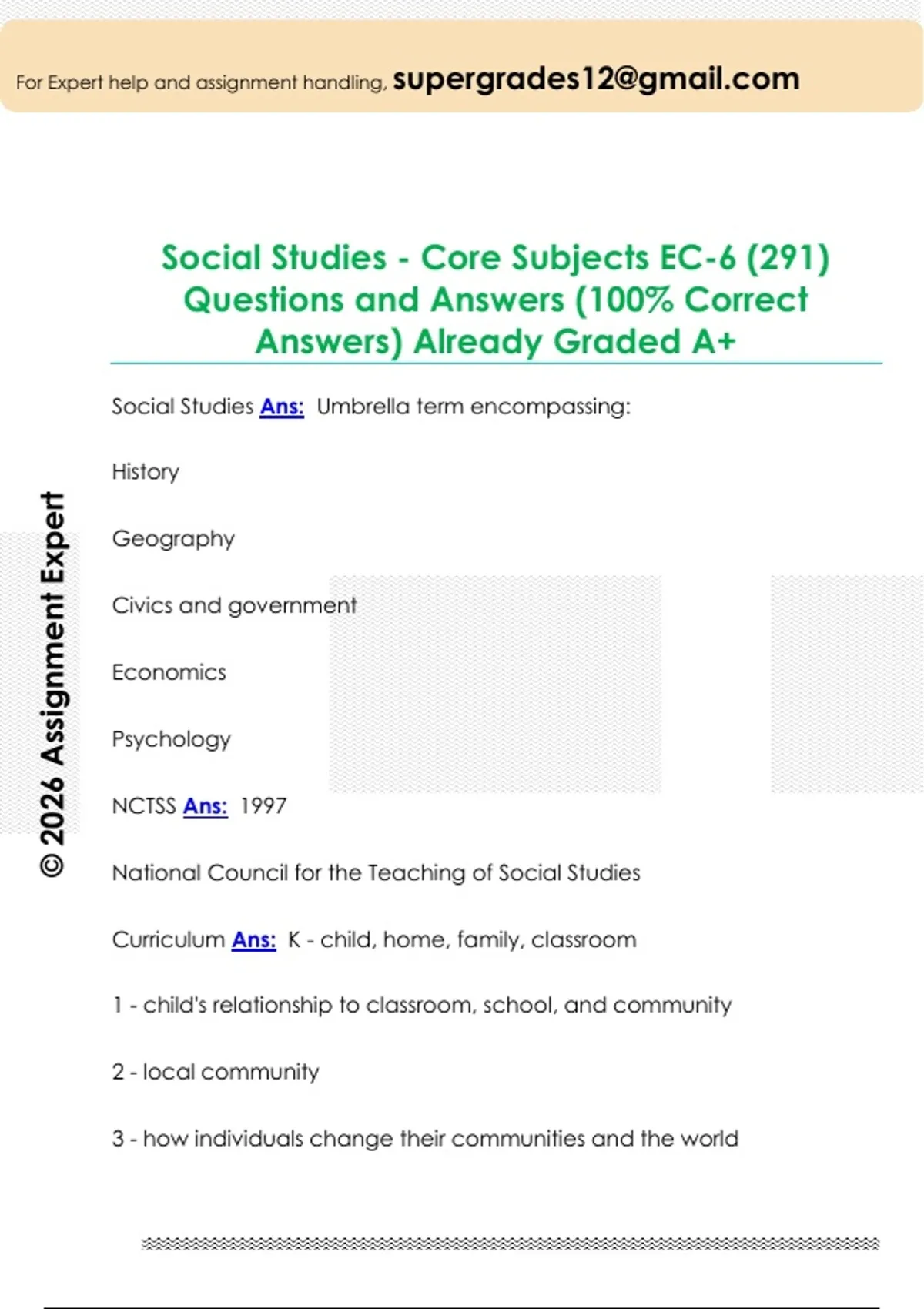 Social Studies - Core Subjects EC-6 (291) Questions and Answers (100% Correct Answers) Already Graded A+