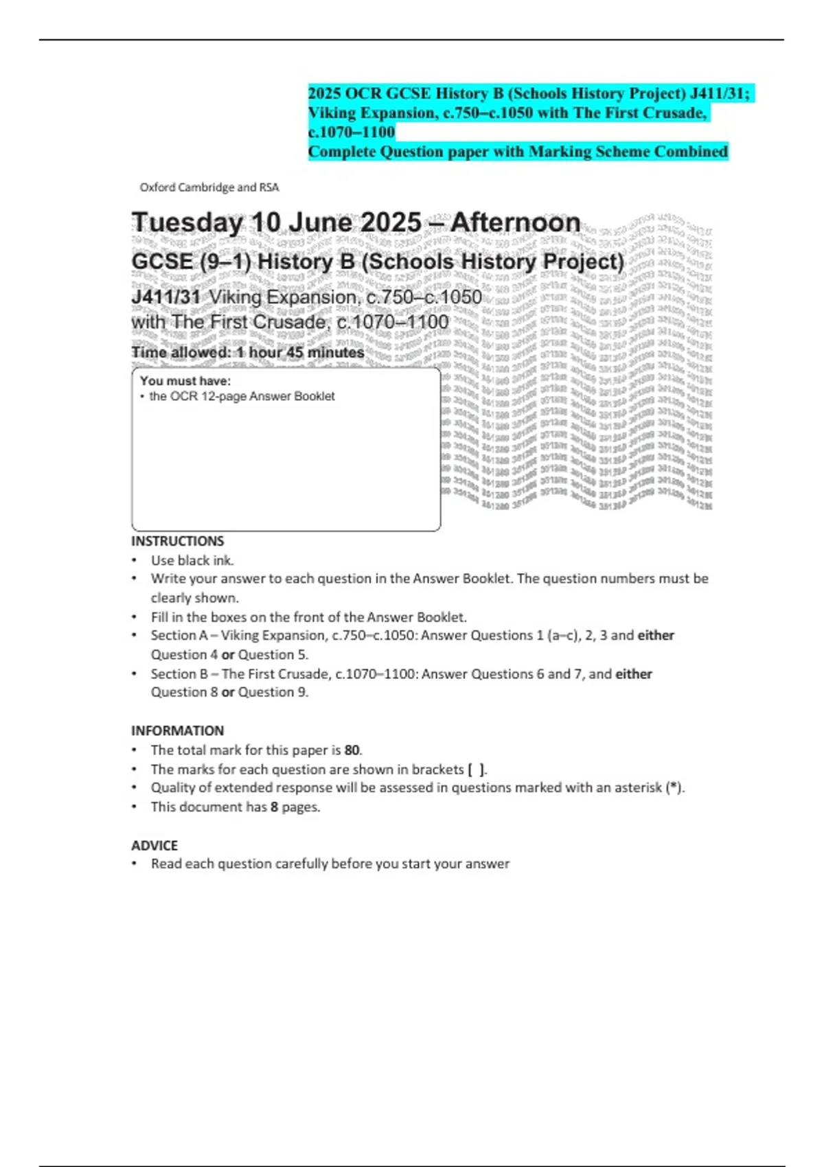 2025 OCR GCSE History B (Schools History Project) J411/31;