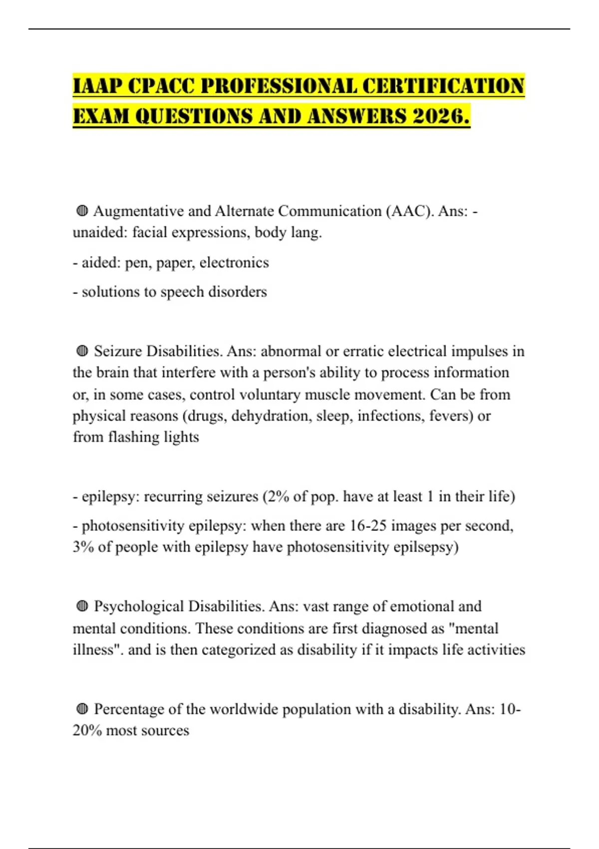 ◍ Percentage of the worldwide population with a disability. Ans: 10-