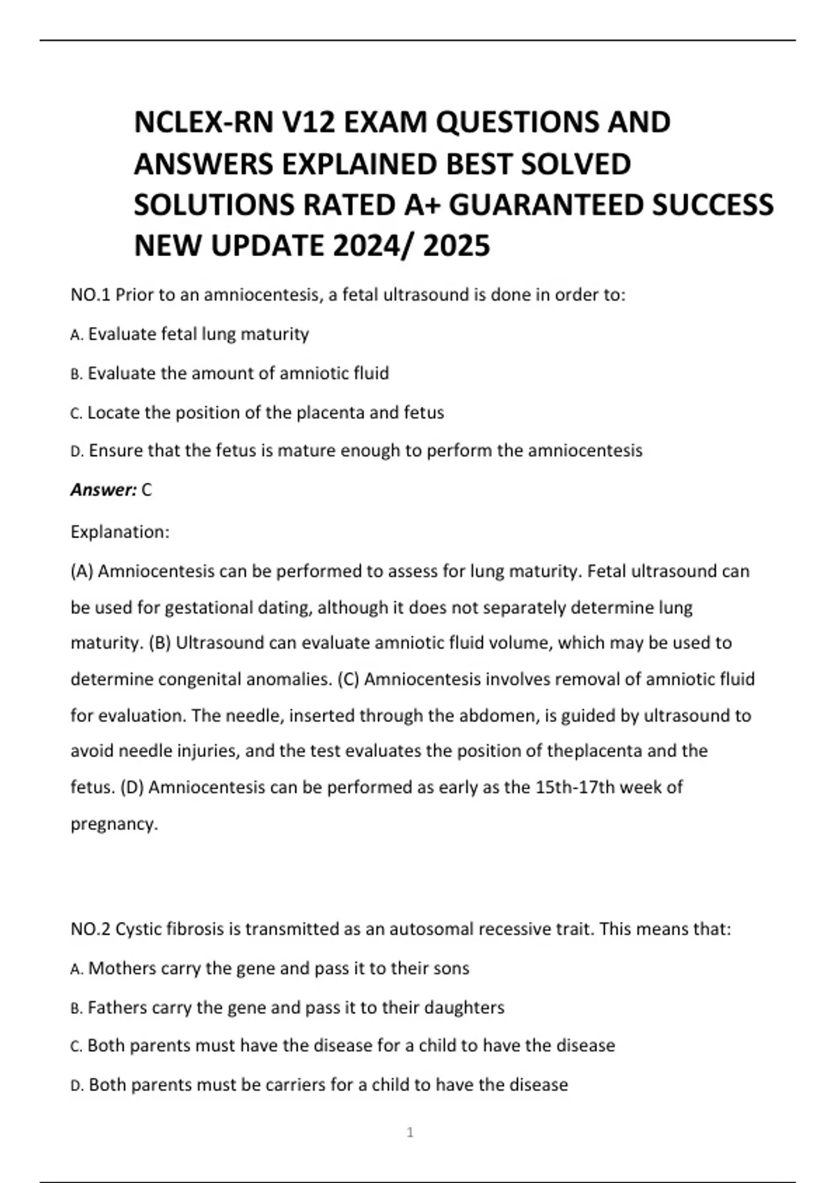 NCLEX-RN V12 EXAM QUESTIONS AND