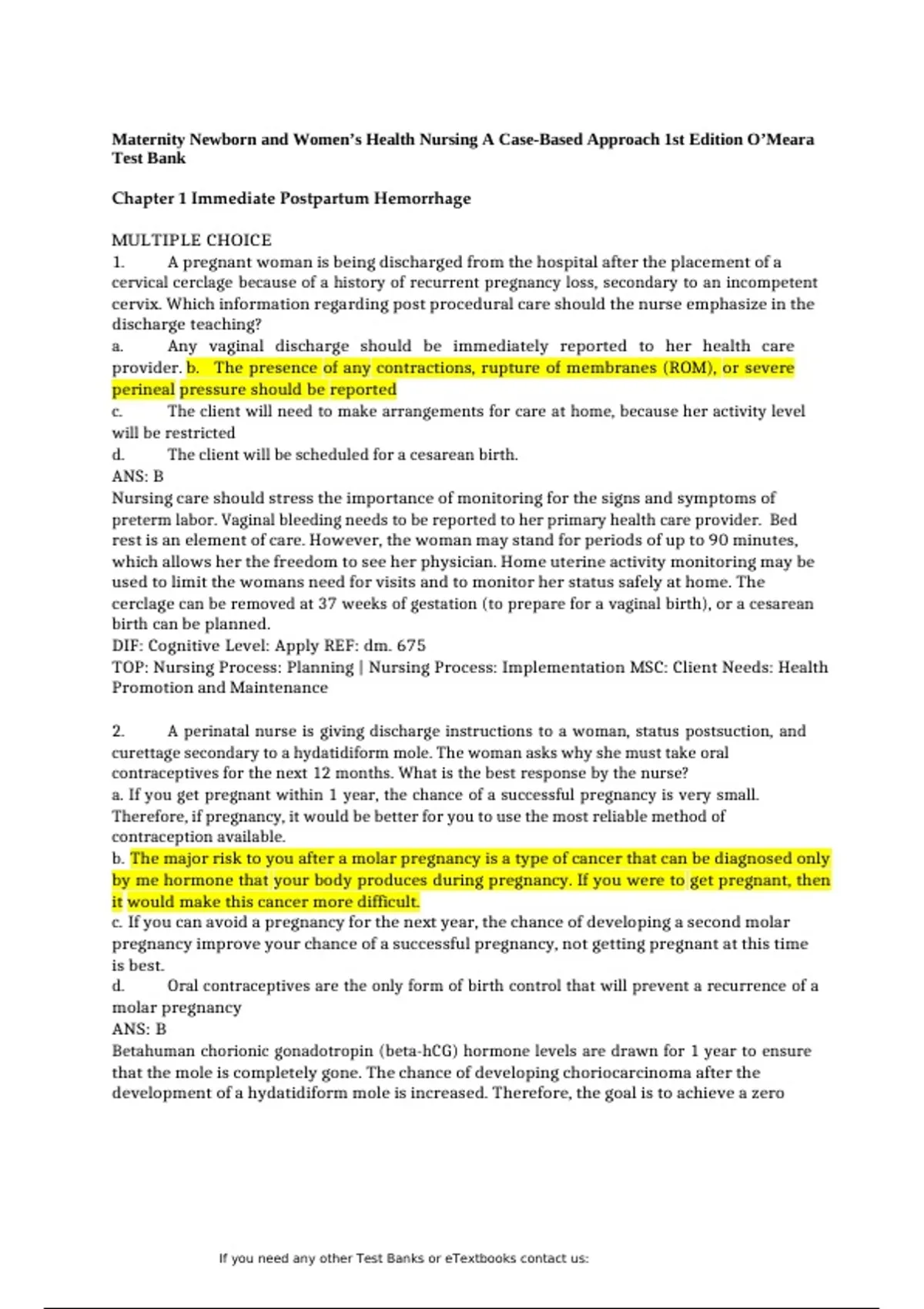 Maternity Newborn and Women’s Health Nursing A Case-Based Approach 1st Edition O’Meara
