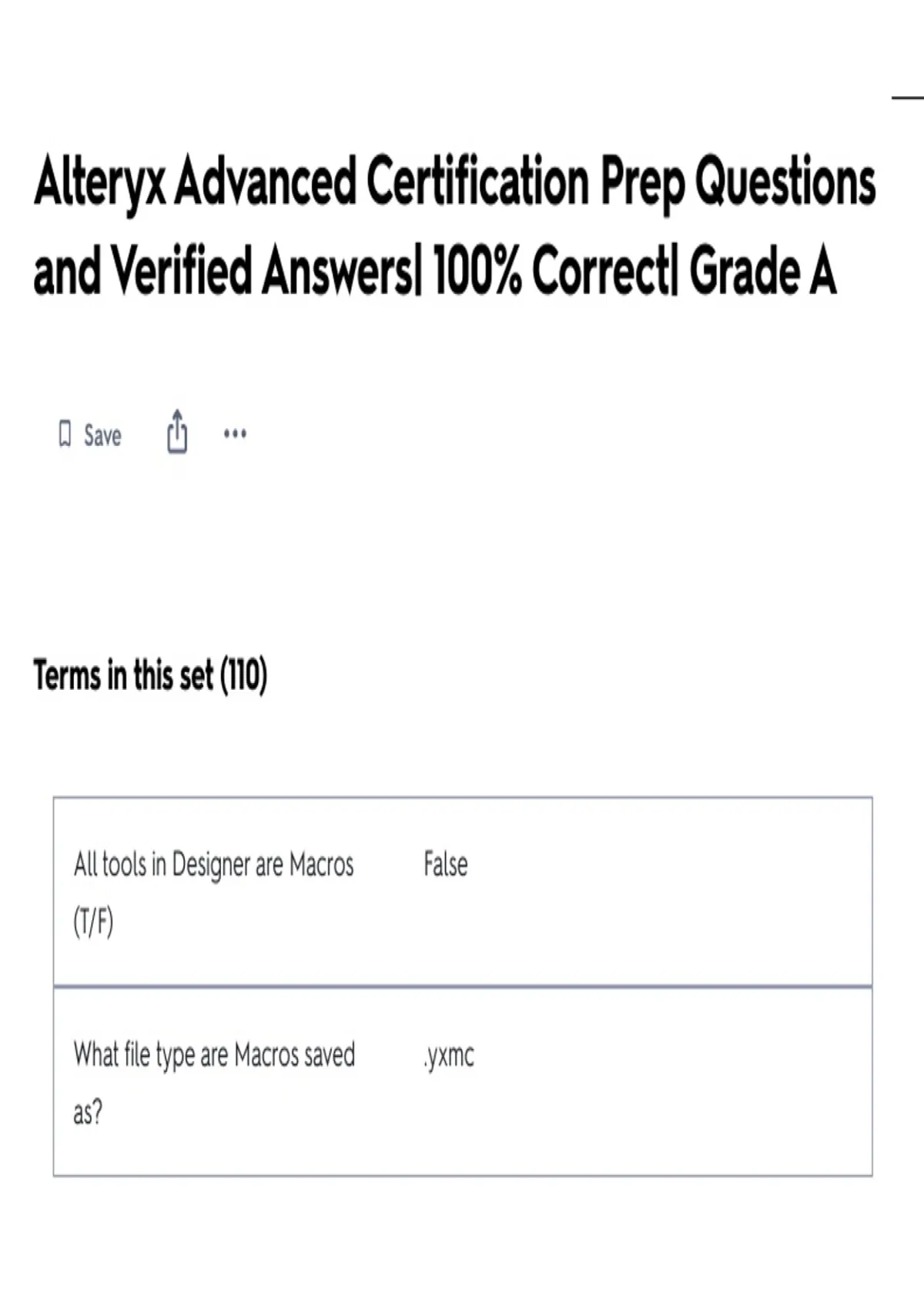 Alteryx Advanced Certification Prep Questions and Verified Answers| 100% Correct| Grade A