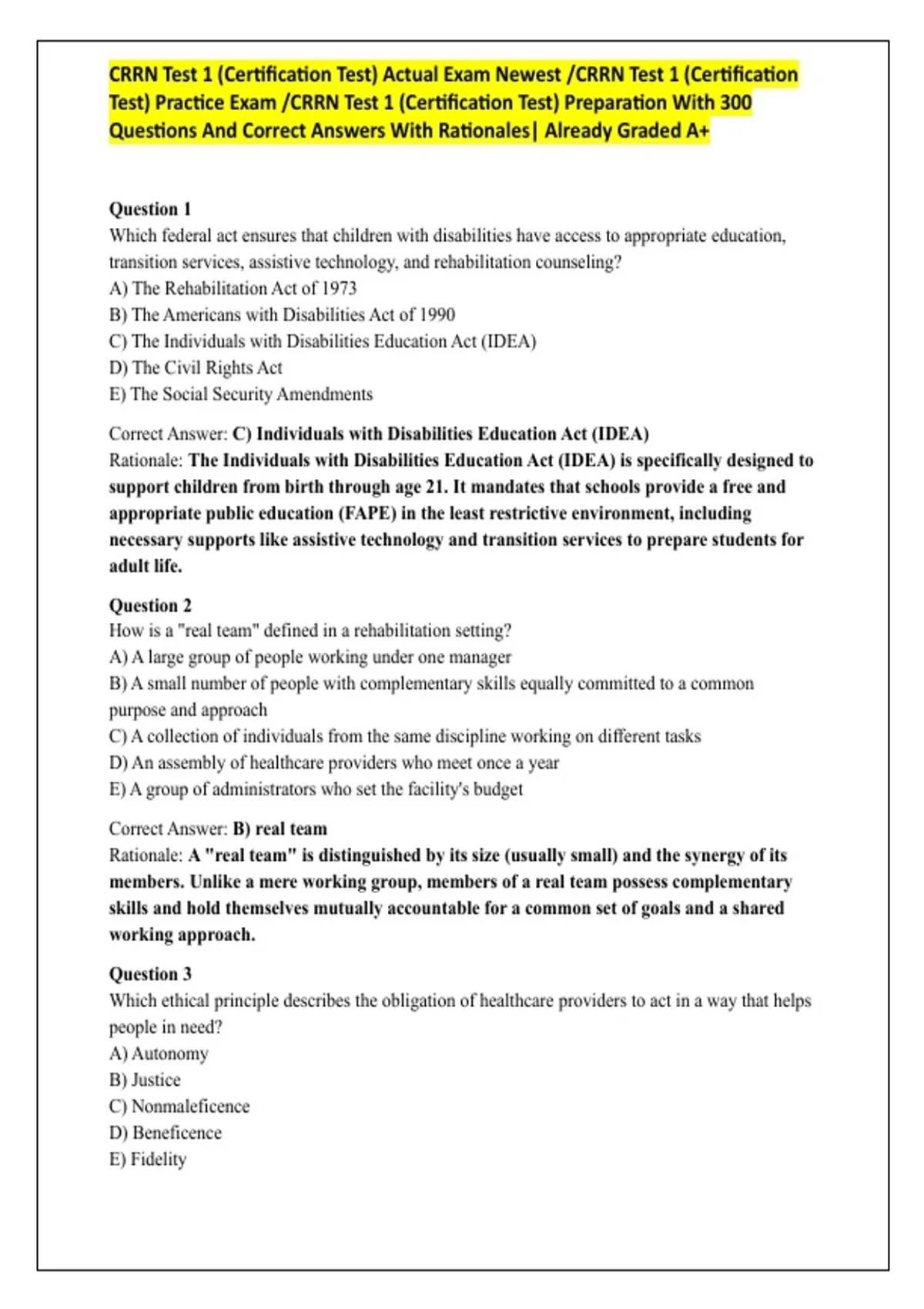 Test) Practice Exam /CRRN Test 1 (Certification Test) Preparation With 300